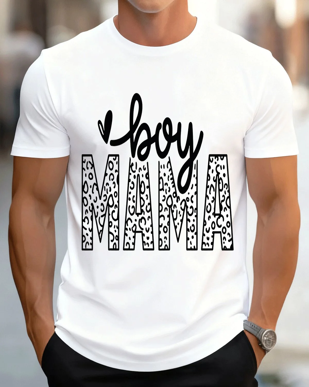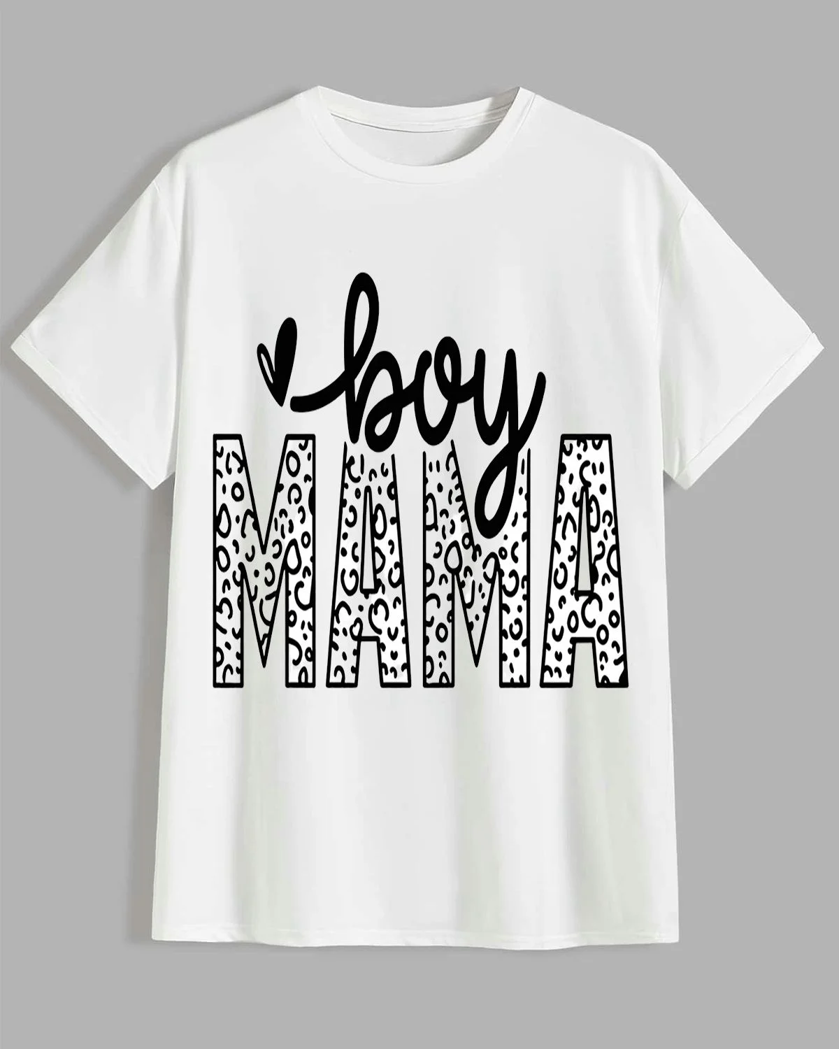Boy Mama Mom Summer Cotton Graphic T Shirt - Casual Chic, Short Sleeve, Soft Fabric, Comfortable Fit
