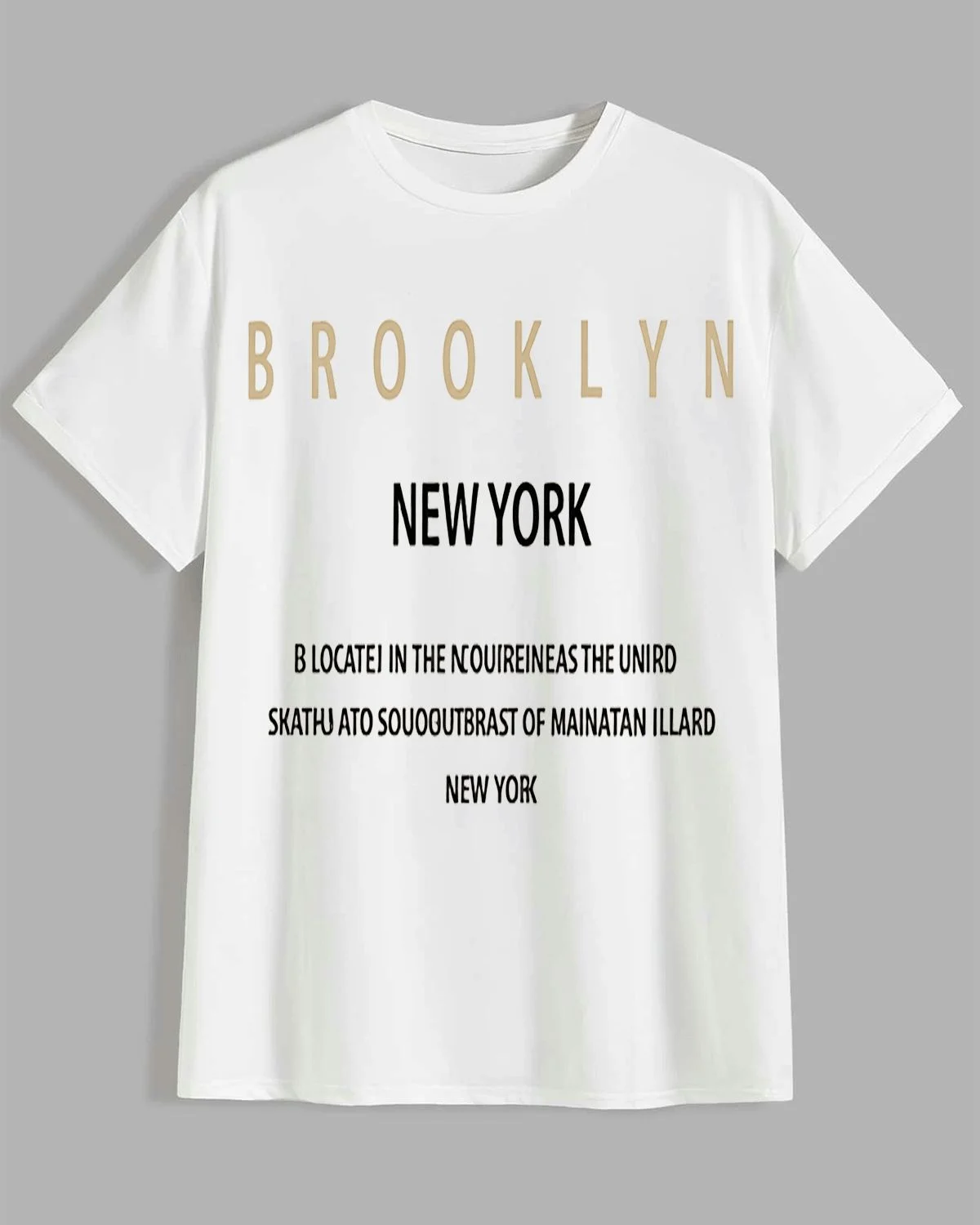 Brooklyn New York Summer Cotton Graphic T Shirt - Urban Vintage, Short Sleeve, Soft Fabric, Comfortable Fit
