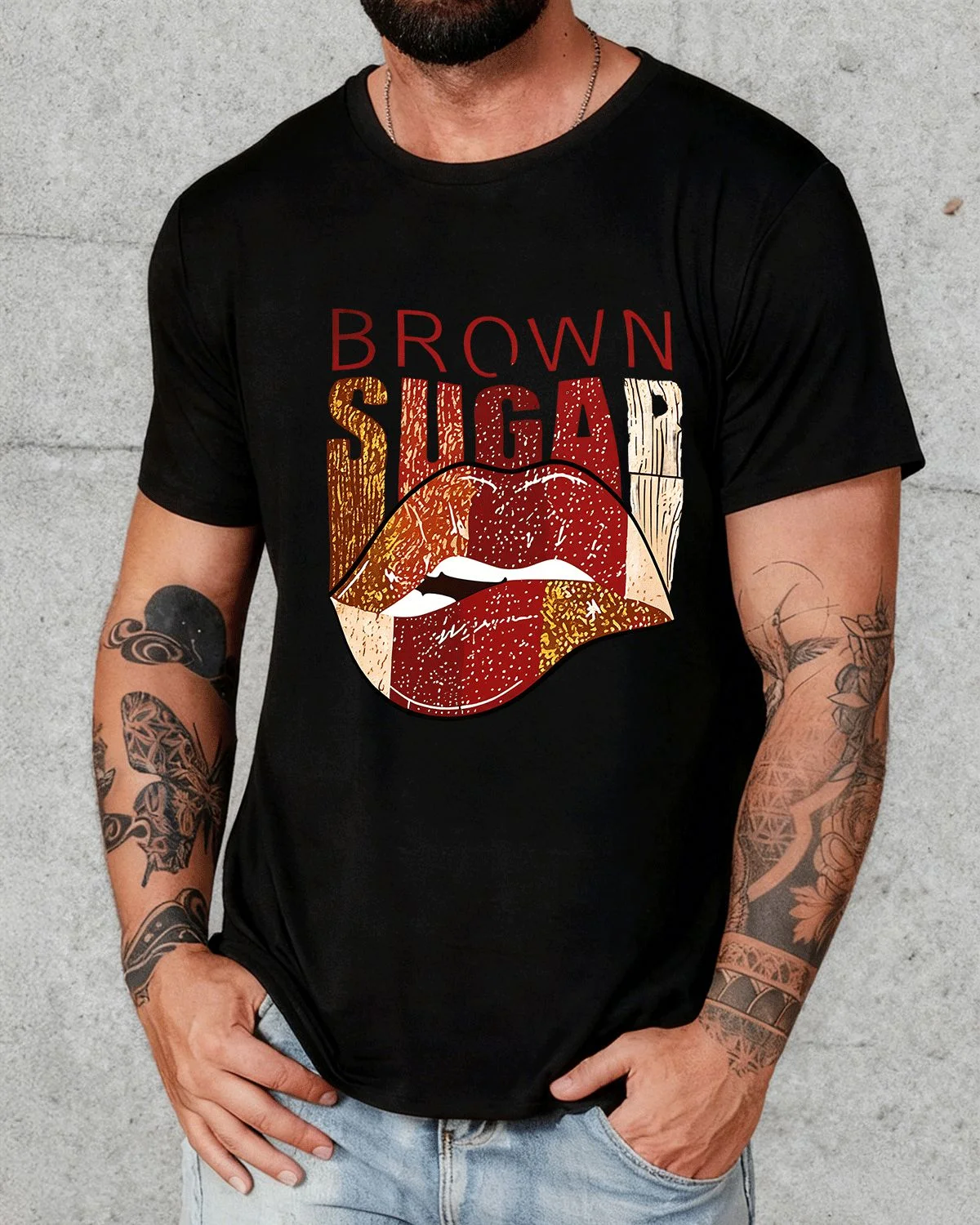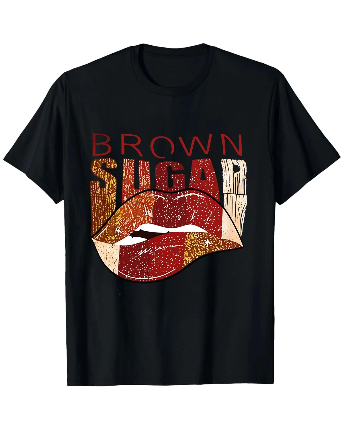 Brown Sugar Lips Summer Cotton Graphic T Shirt - Vintage Retro,Short Sleeve,Soft Fabric,Comfortable Fit