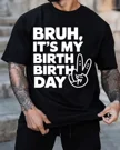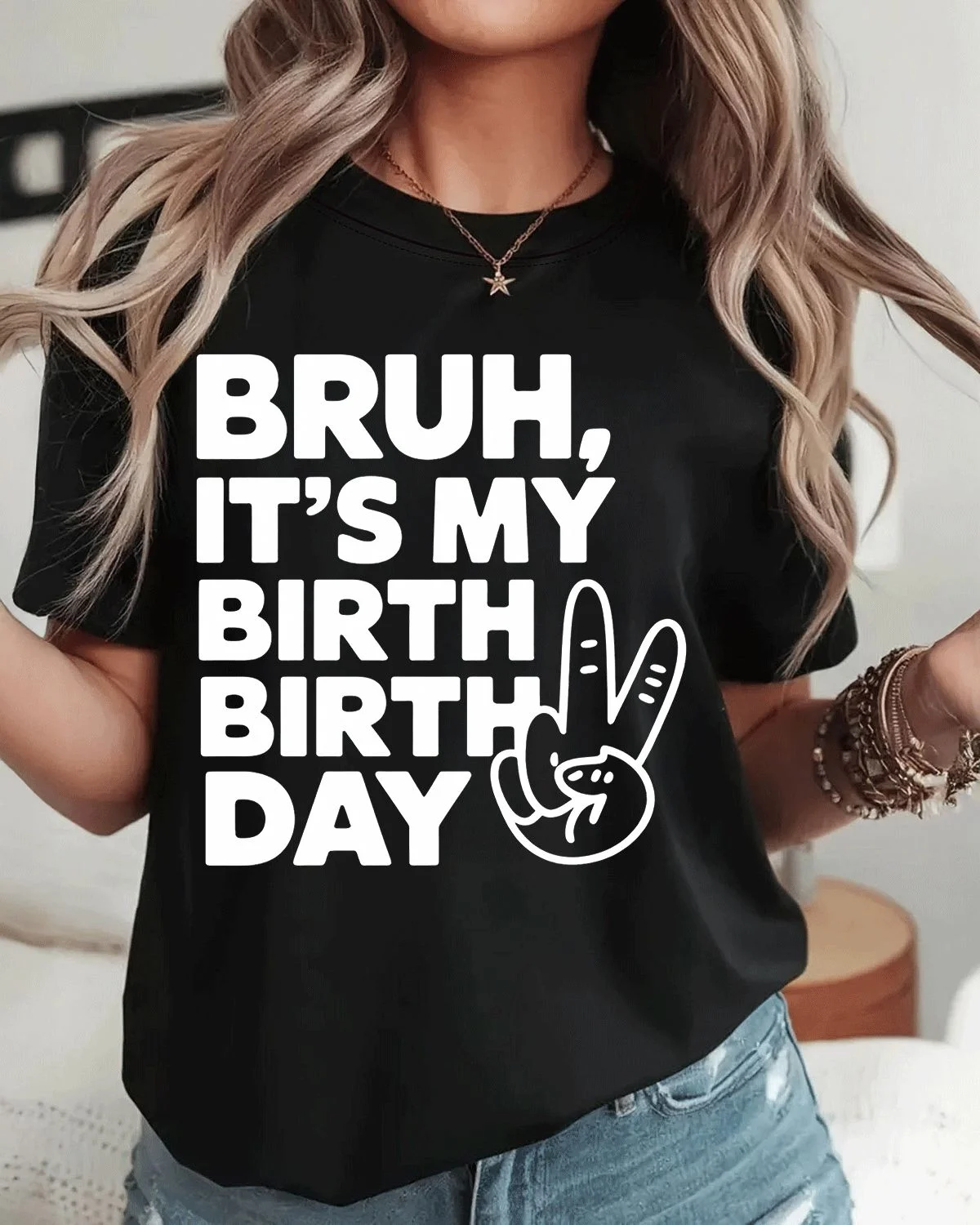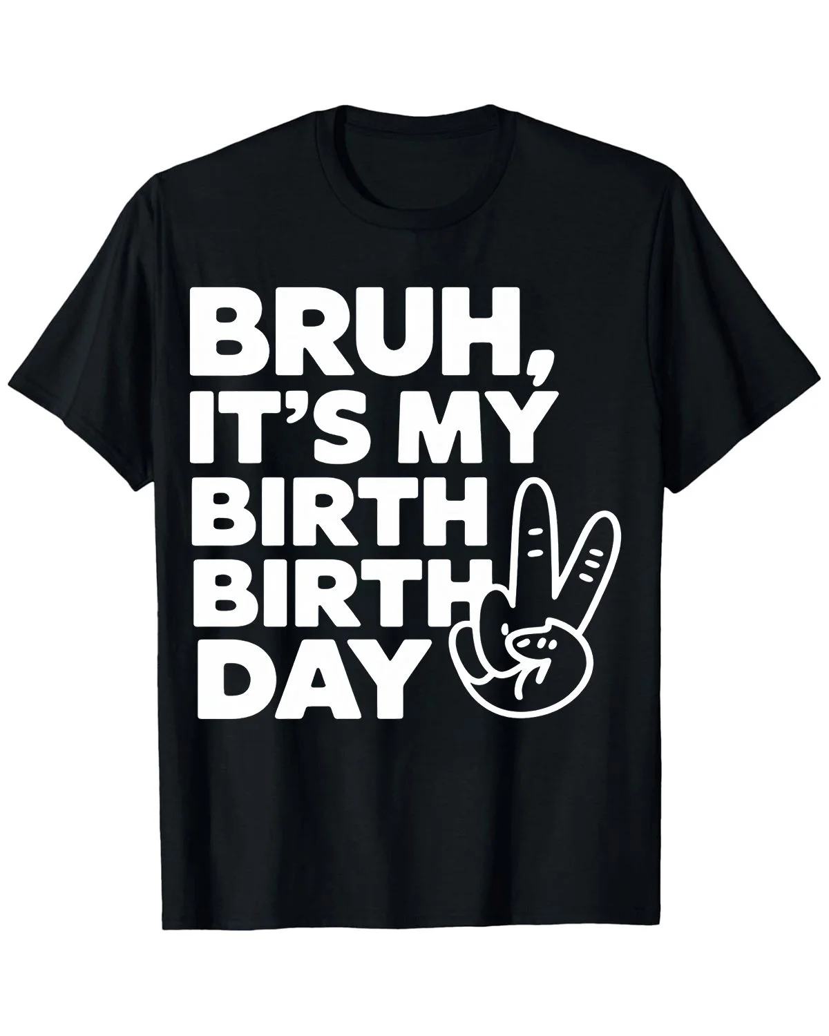 Bruh It's My Birthday Peace Sign Summer Cotton Graphic T Shirt - Funny Casual, Short Sleeve, Soft Fabric, Comfortable Fit