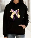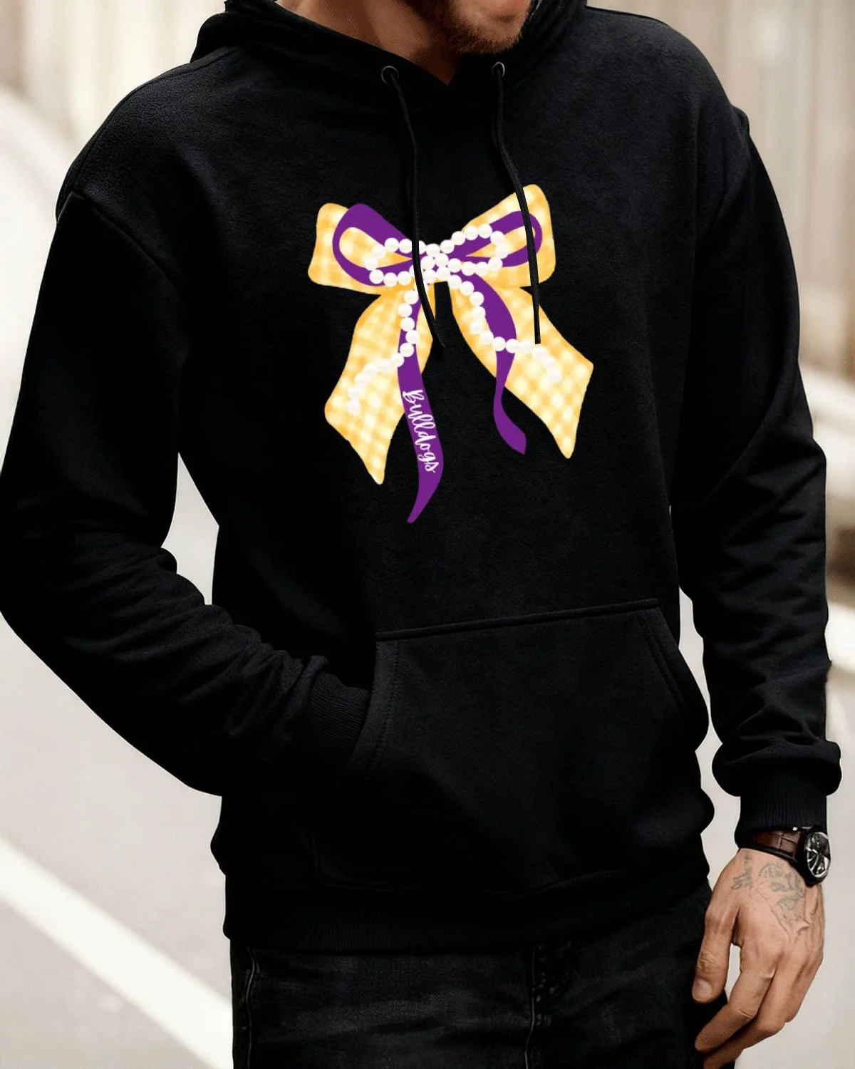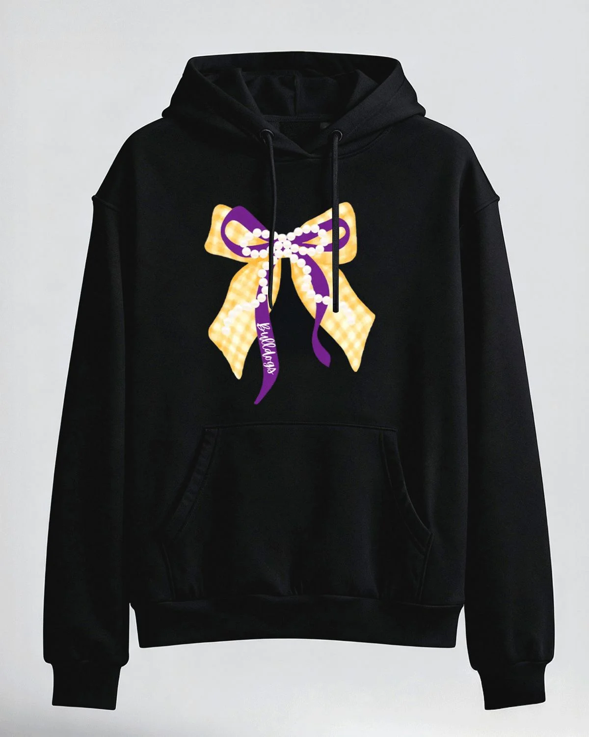 Bulldogs Gingham Bow with Pearls Cozy Cotton Graphic Hoodie with Pocket-Casual Cute,Long Sleeve,Soft Fabric,Comfortable Fit