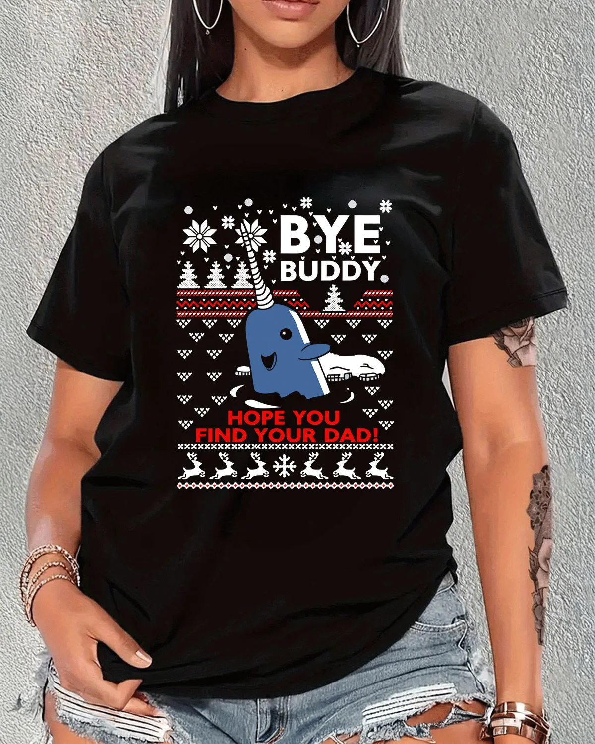 Christmas Chickens and Reindeer in Santa Hats Summer Cotton Graphic T Shirt - Funny Retro, Short Sleeve, Soft Fabric, Comfortable Fit