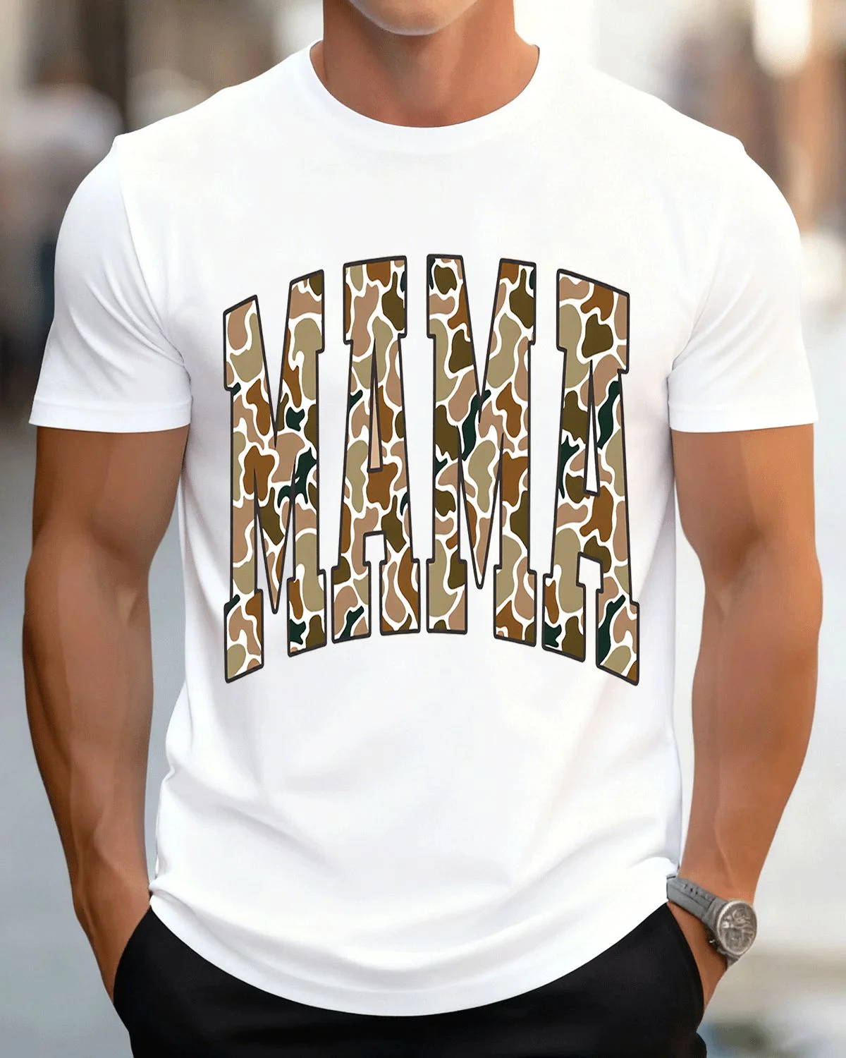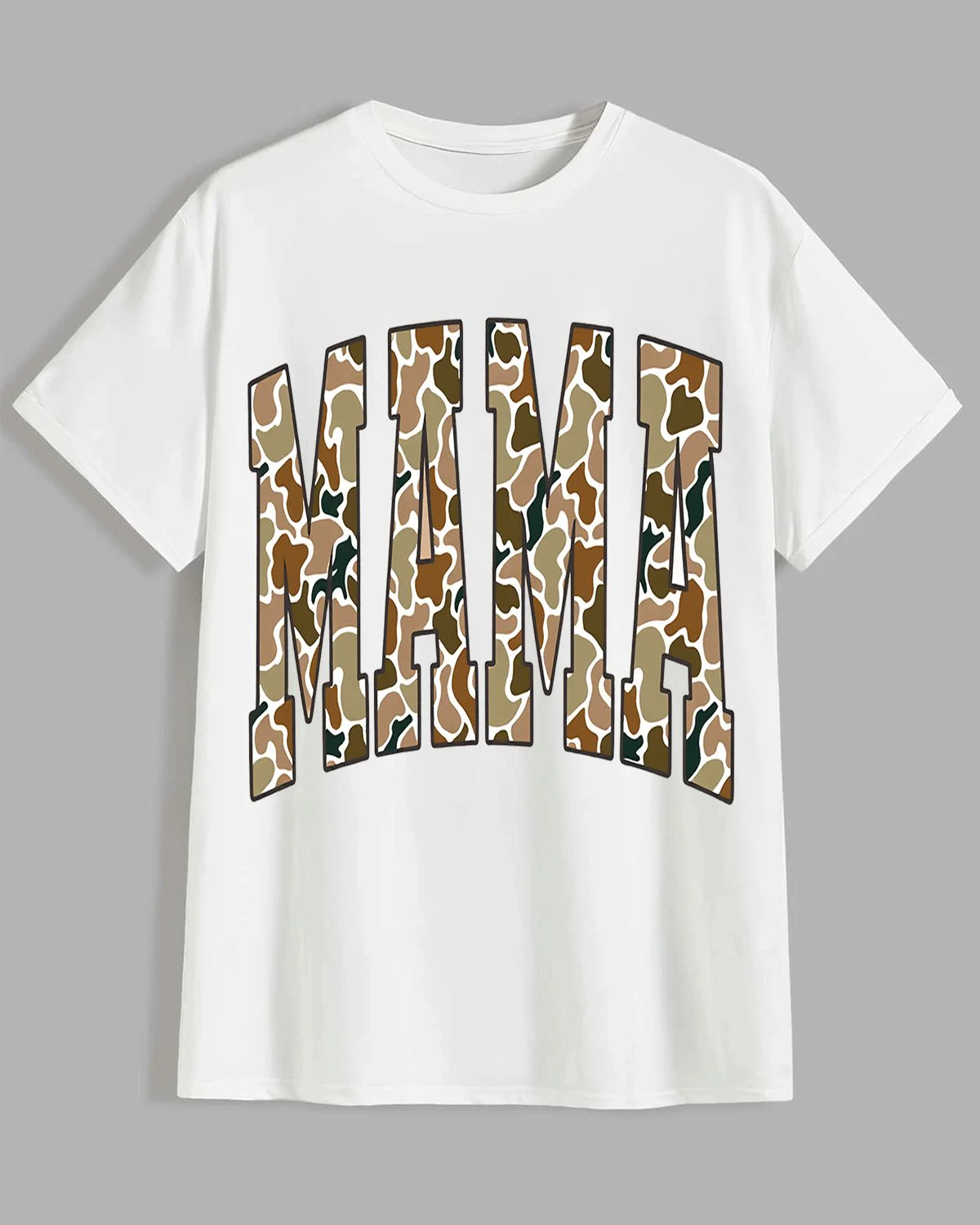 Camo Mama Mom Summer Cotton Graphic T Shirt - Casual Cool, Short Sleeve, Soft Fabric, Comfortable Fit