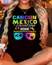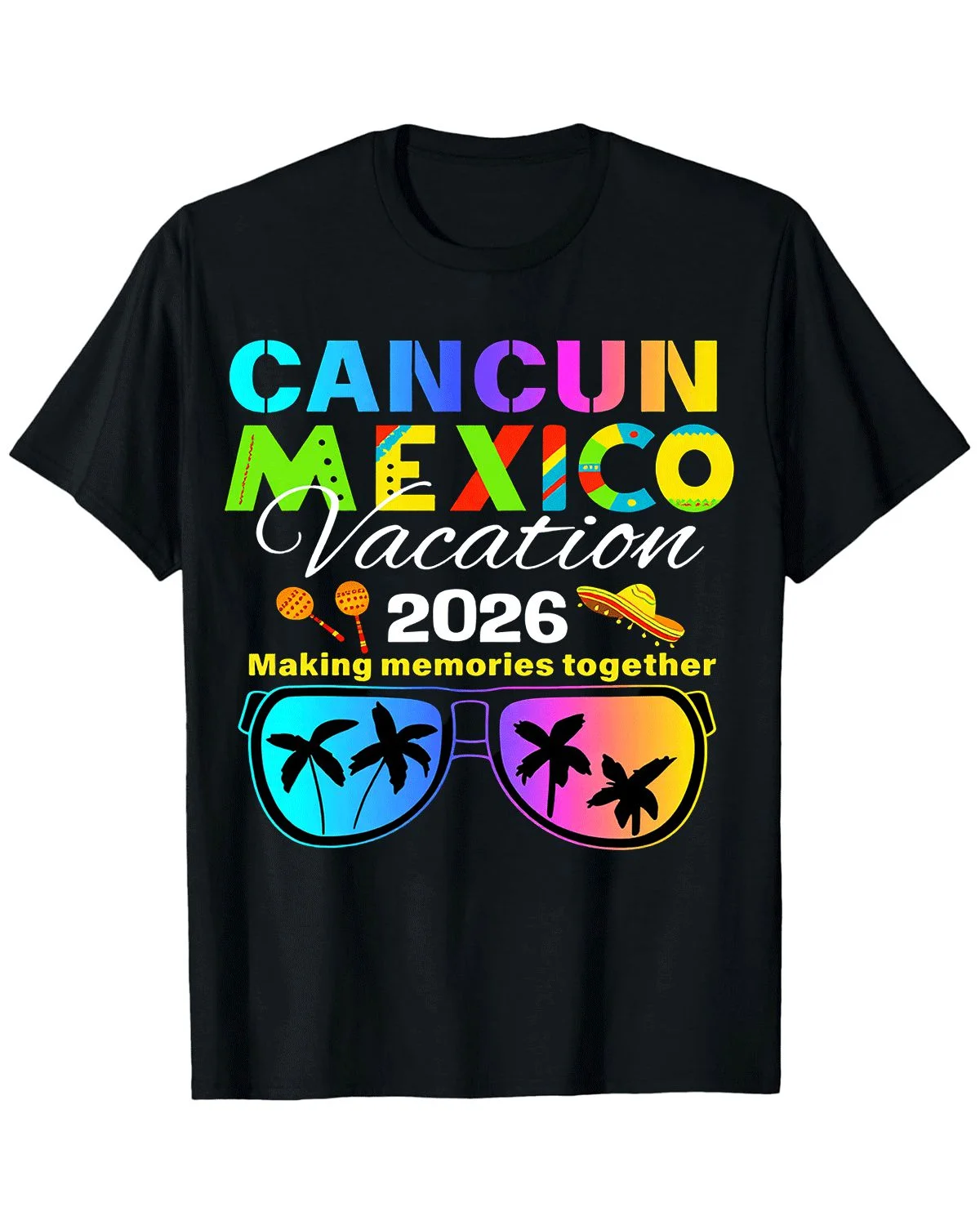 Cancun Mexico Vacation 2026 New Year Summer Cotton Graphic T Shirt - Casual Trendy, Short Sleeve, Soft Fabric, Comfortable Fit