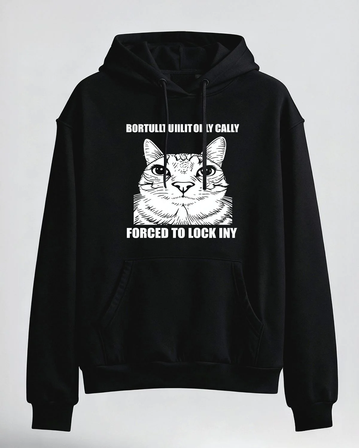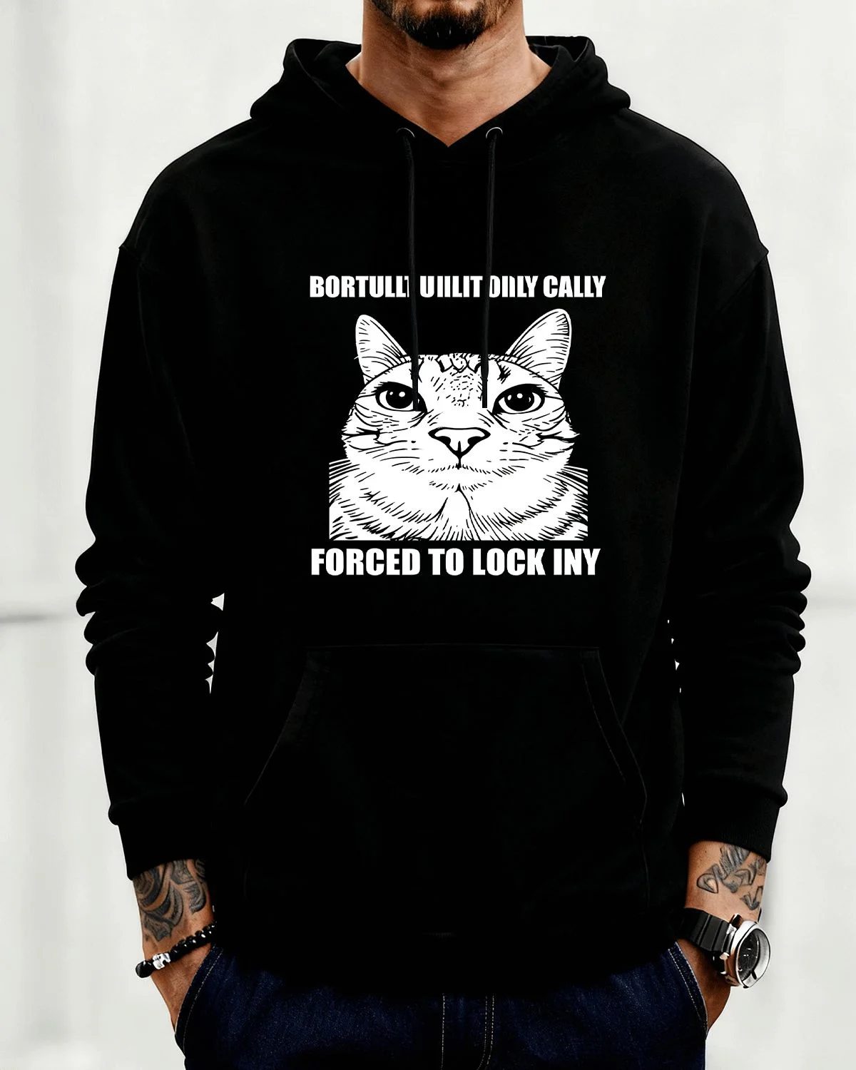 Cat Humor Forced to Lock Iny Cozy Cotton Graphic Hoodie with Pocket-Funny Casual,Long Sleeve,Soft Fabric,Comfortable Fit