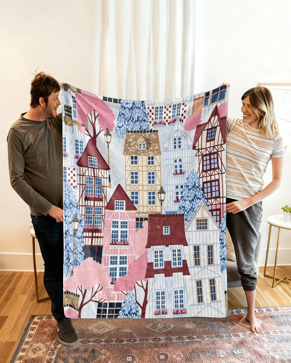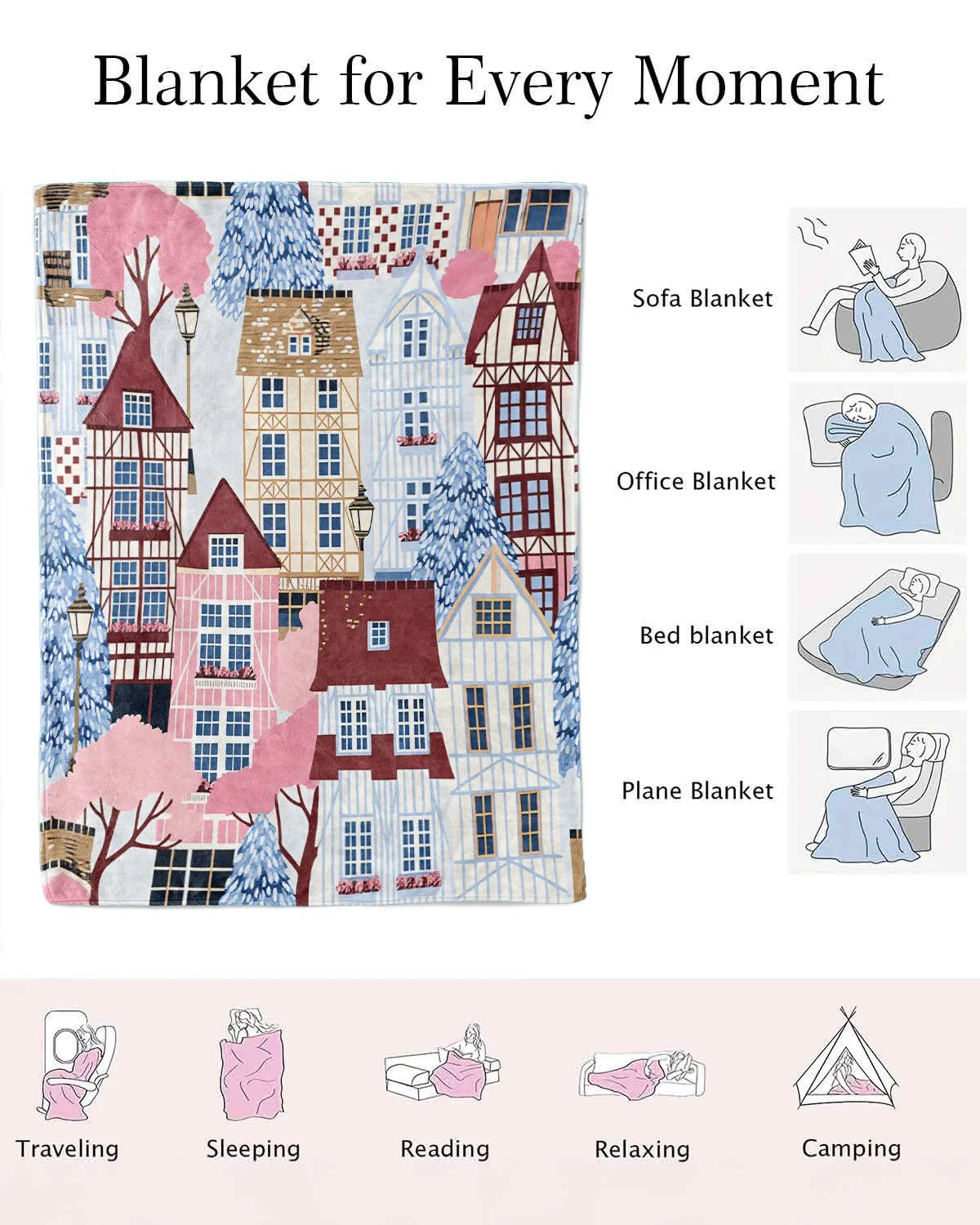 Charming Winter Village Holiday Gift Cozy Flannel Blanket-Cozy Classic,Warm,Plush,Durable,For Couch,Home Decor