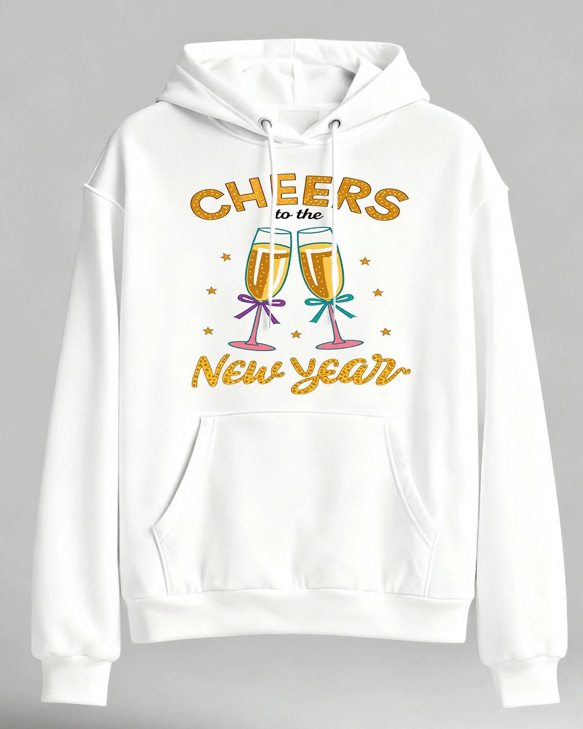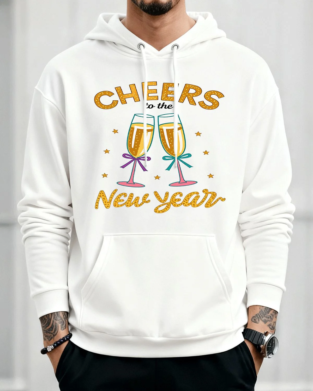 Cheers to the New Year Champagne Glasses Cozy Graphic Hoodie for Men and Women - Casual Trendy, Long Sleeve, Soft Fabric, Comfortable Fit