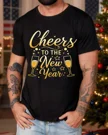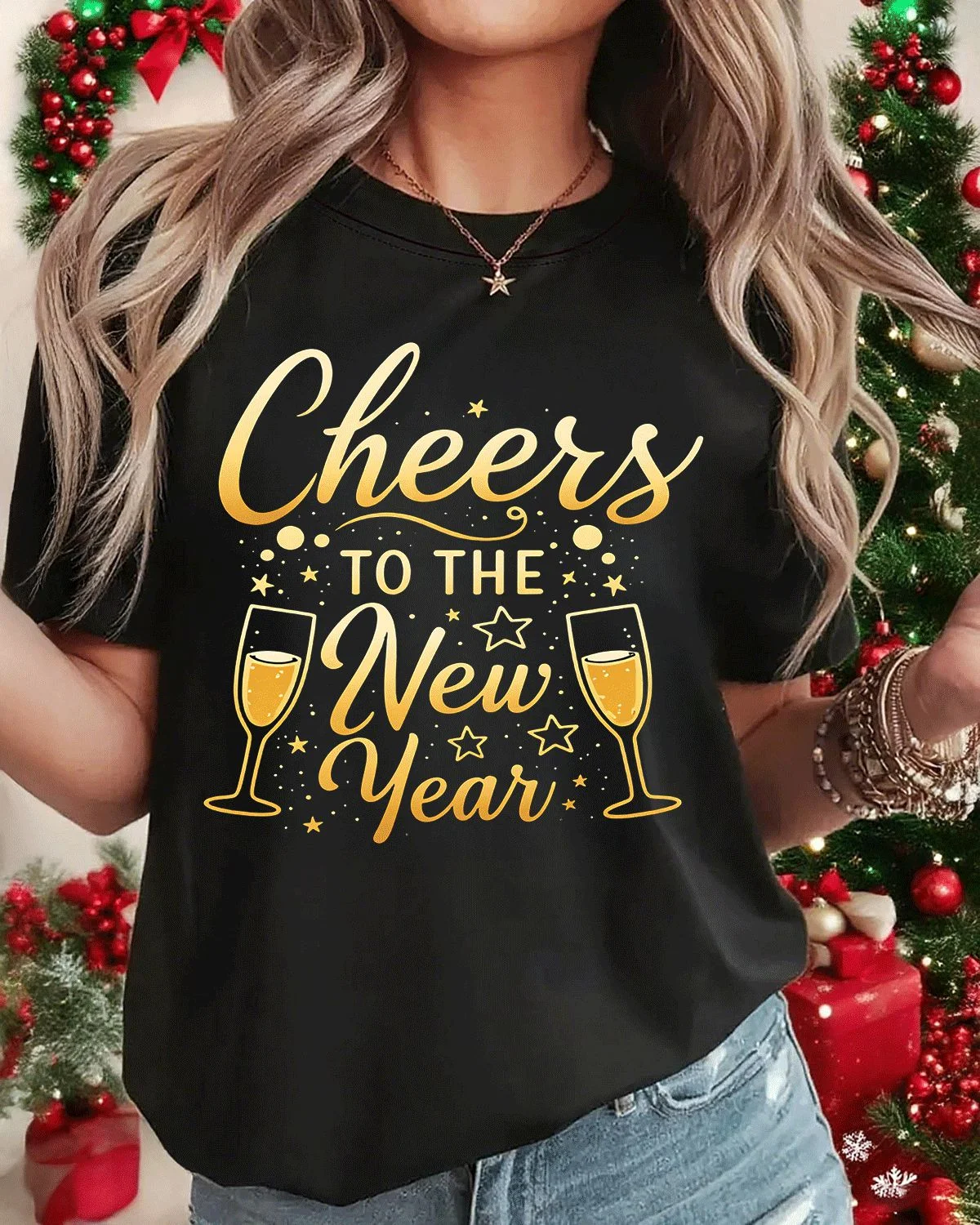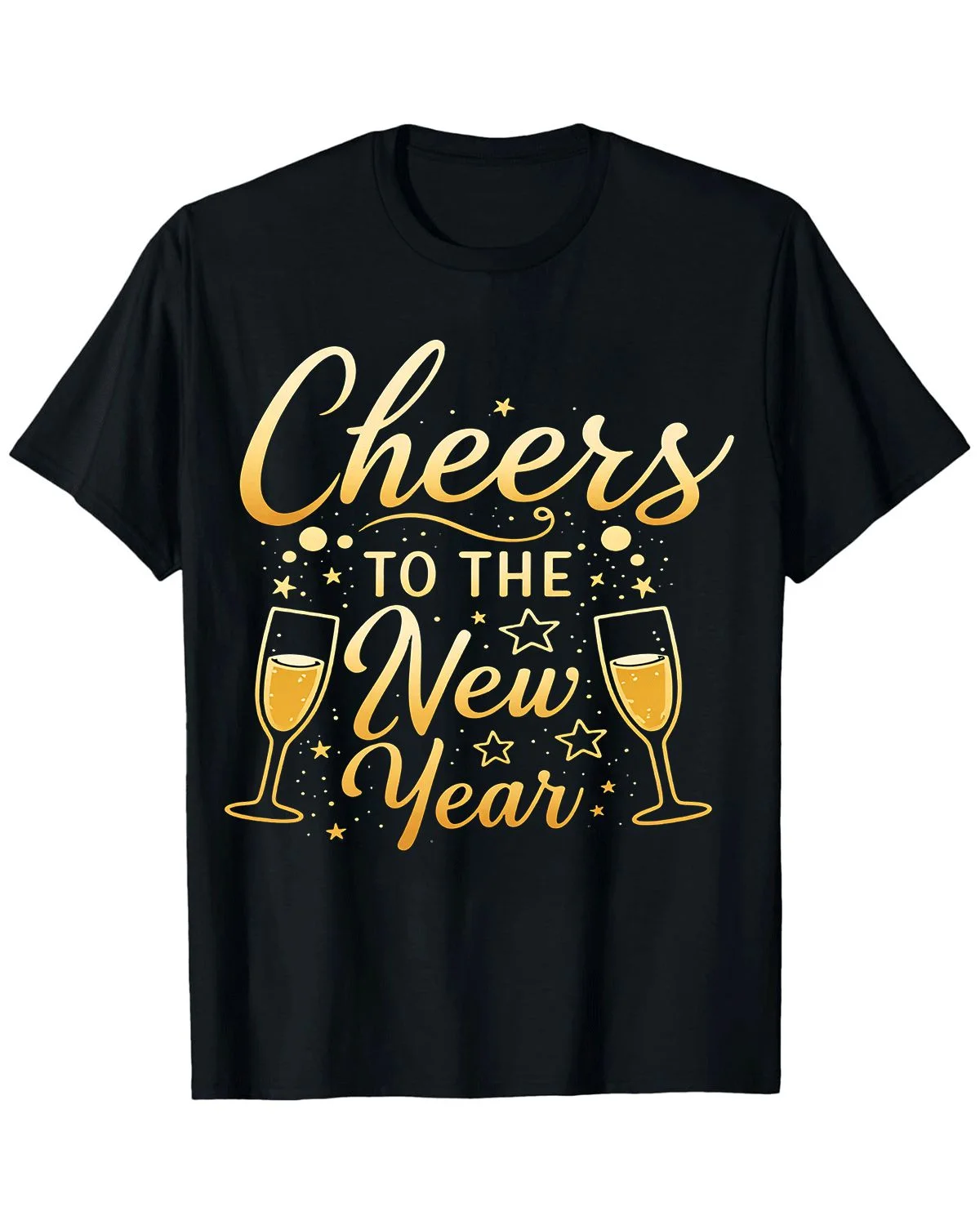 Cheers to the New Year Champagne Glasses Summer Cotton Graphic T Shirt - Casual Chic, Short Sleeve, Soft Fabric, Comfortable Fit