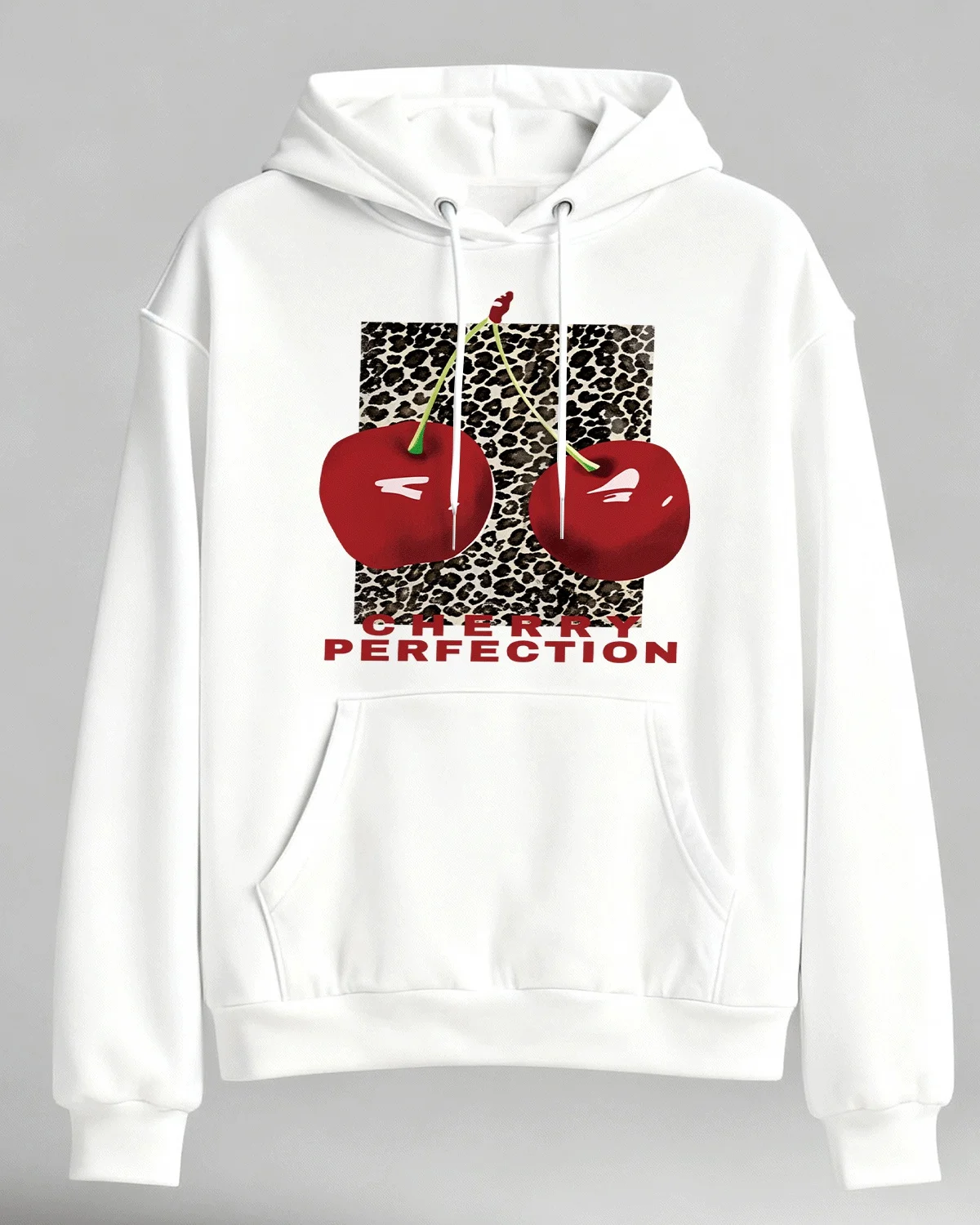 Cherry Perfection Leopard Print Cozy Cotton Graphic Hoodie-Trendy Artistic,Long Sleeves,Soft Fabric,Comfortable Fit