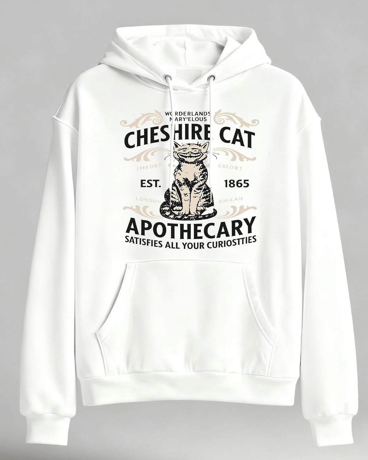 Cheshire Cat Apothecary 1865 Cozy Graphic Hoodie for Men and Women - Vintage Artistic, Long Sleeve, Soft Fabric, Comfortable Fit