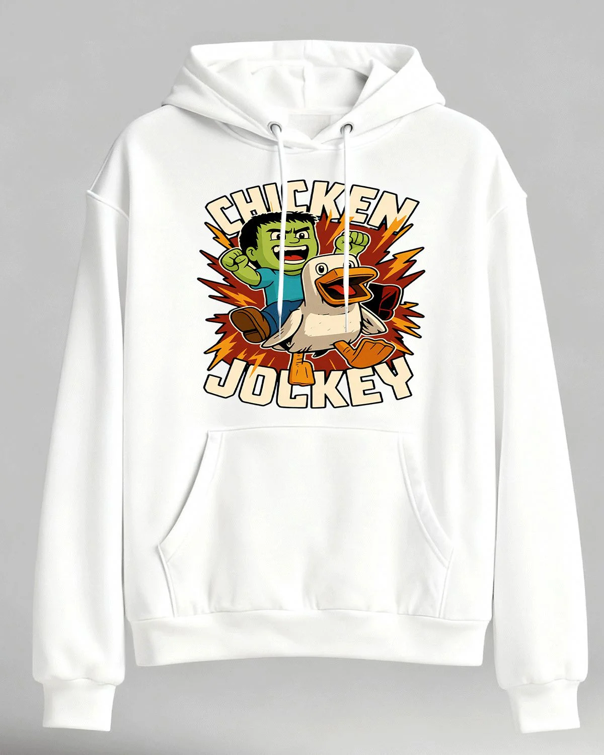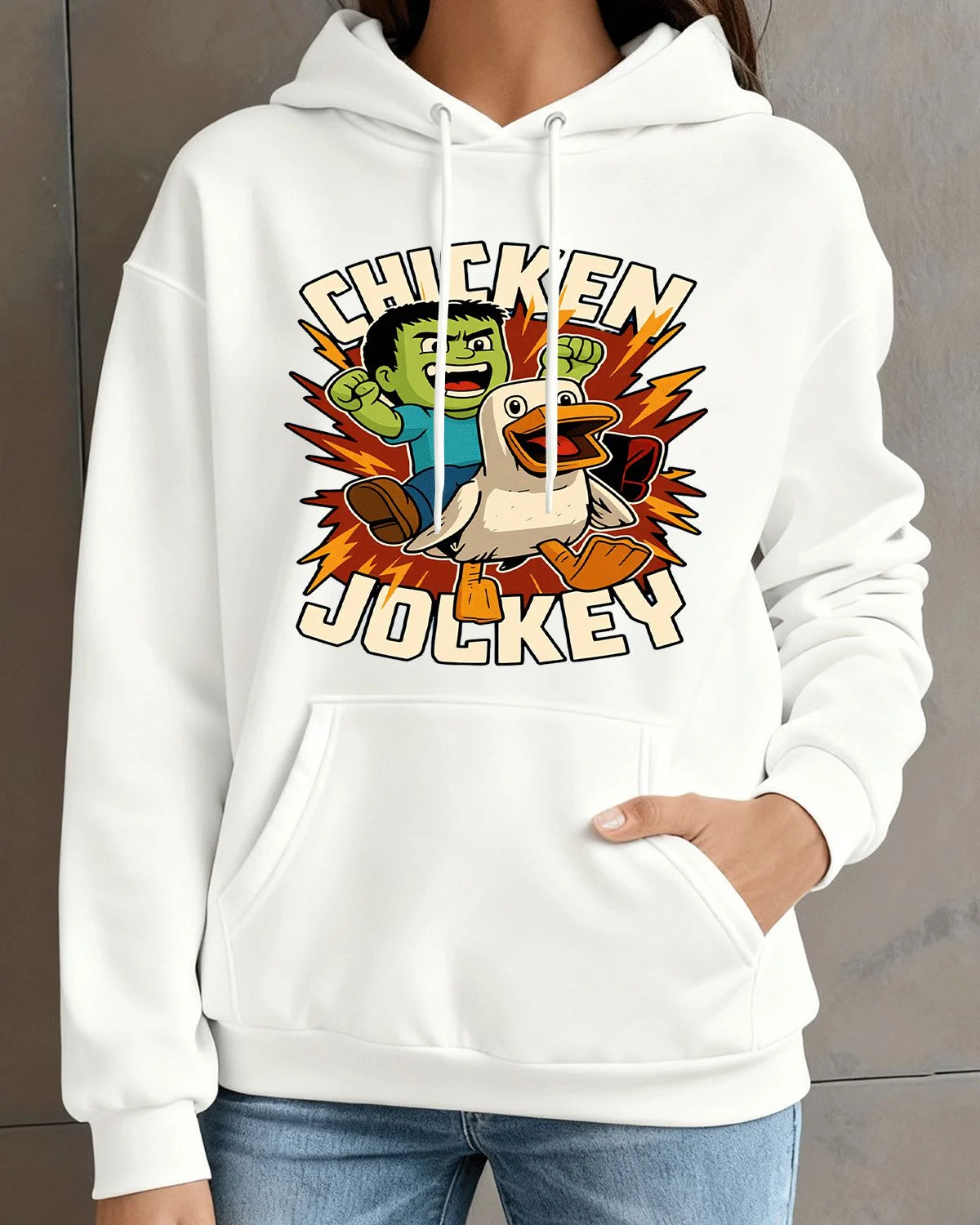 Chicken Jockey Cartoon Rider Cozy Graphic Hoodie for Men and Women - Funny Retro, Long Sleeve, Soft Fabric, Comfortable Fit