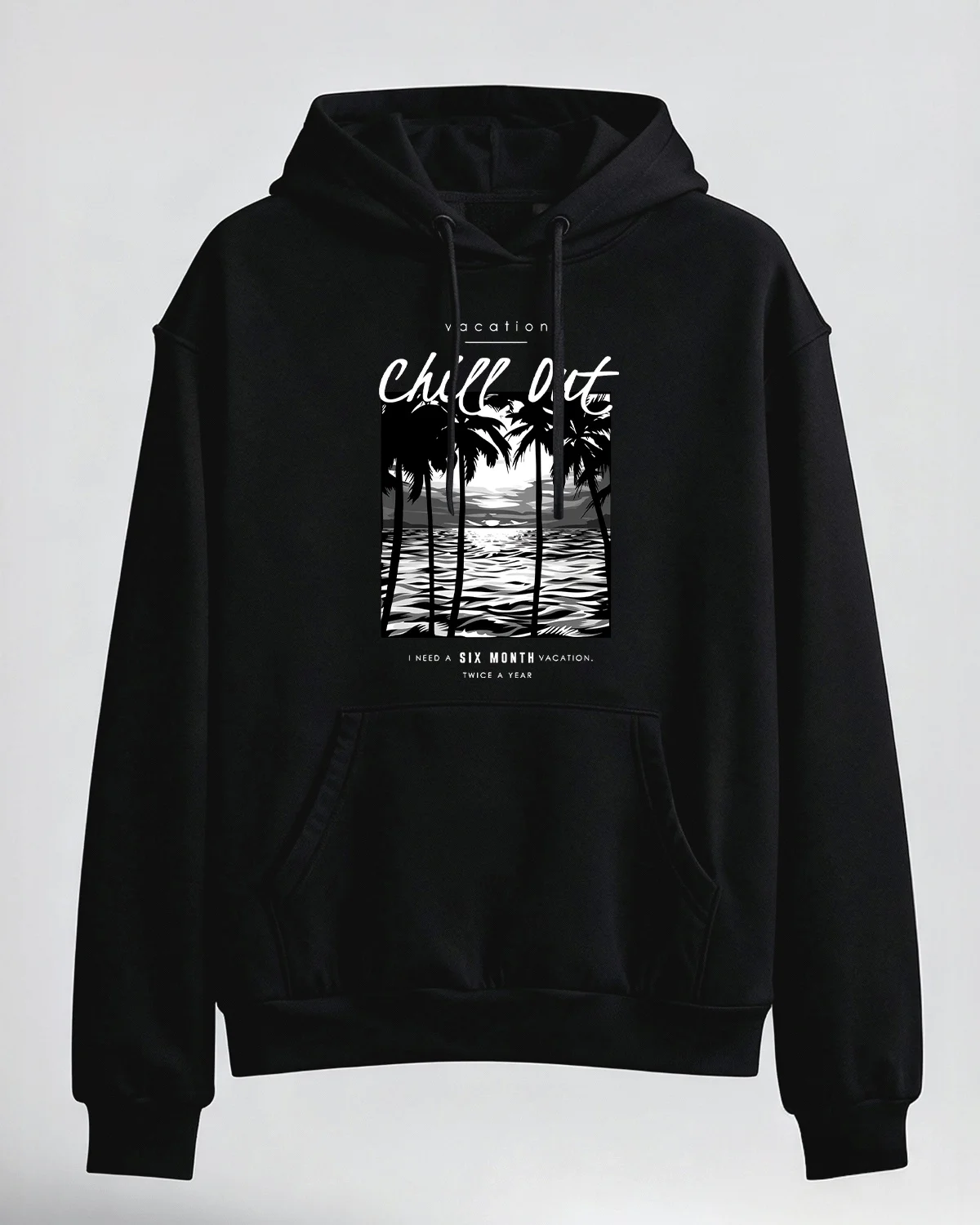 Chill Out Six Month Vacation Cozy Cotton Graphic Hoodie-Casual Relaxed,Long Sleeves,Soft Fabric,Comfortable Fit