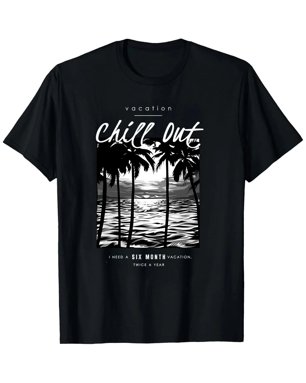 Chill Out Six Month Vacation Summer Cotton Graphic T Shirt-Casual Relaxed,Short Sleeve,Soft Fabric,Comfortable Fit
