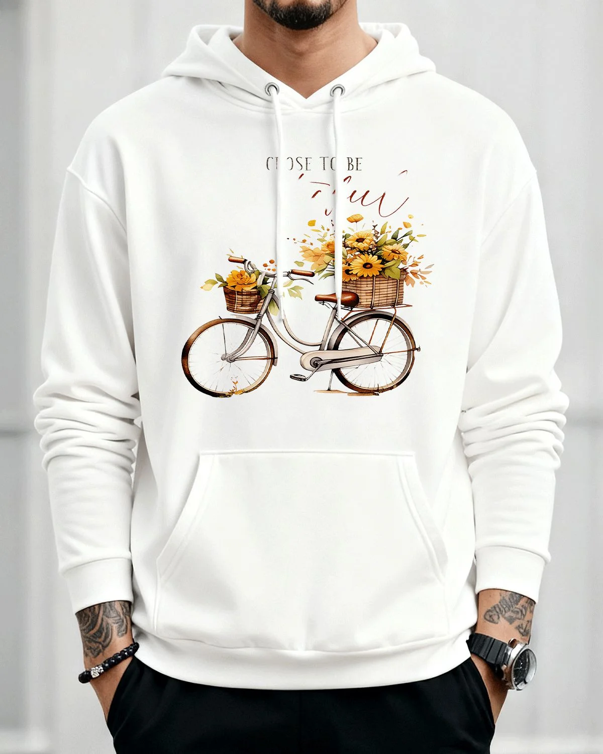 Choose To Be You Bicycle With Sunflowers Cozy Graphic Hoodie for Men and Women - Casual Vintage, Long Sleeve, Soft Fabric, Comfortable Fit