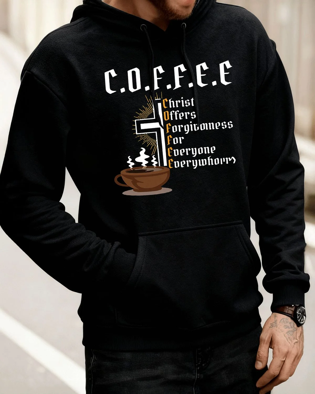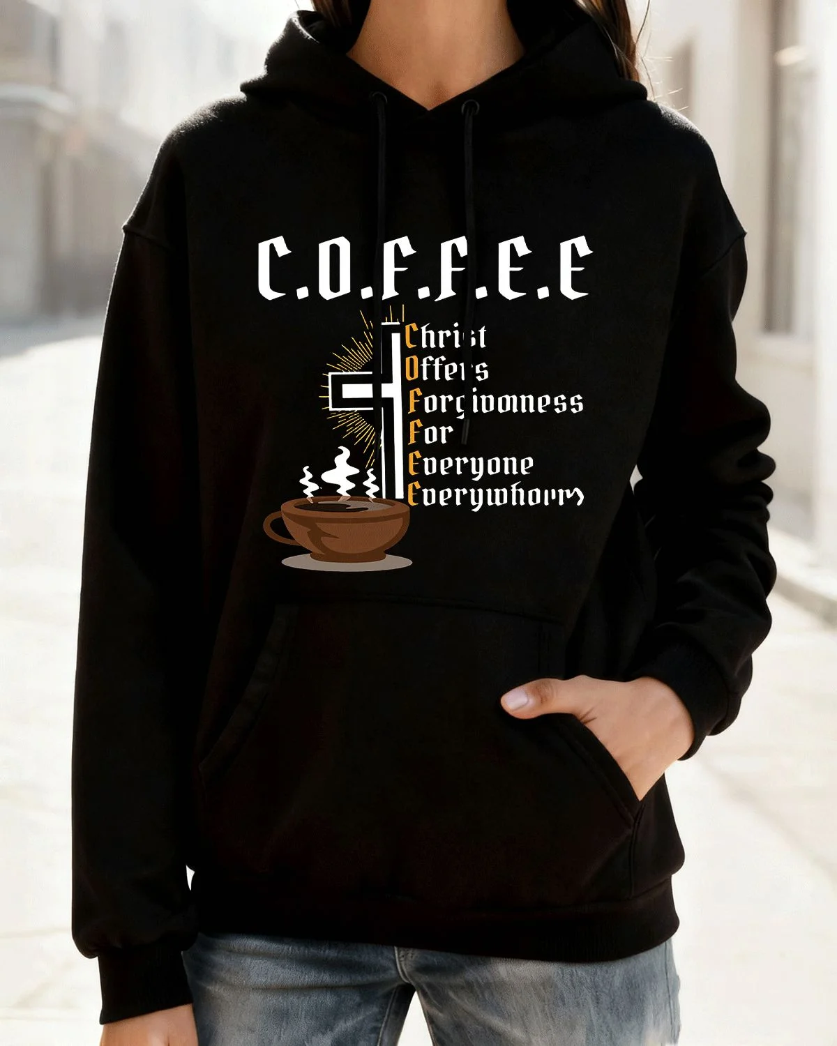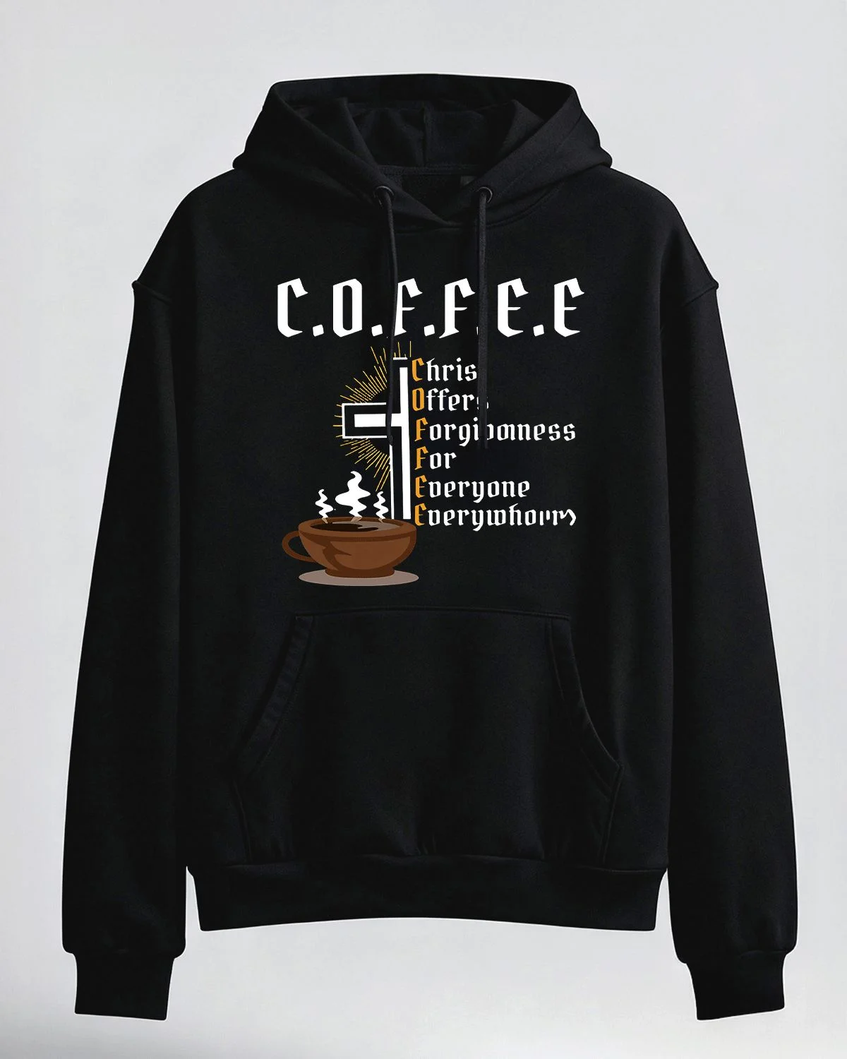 Christ Offers Forgiveness For Everyone Everywhere Coffee Summer Cozy Graphic Hoodie-Casual Vintage,Long Sleeve,Soft Fabric,Comfortable Fit