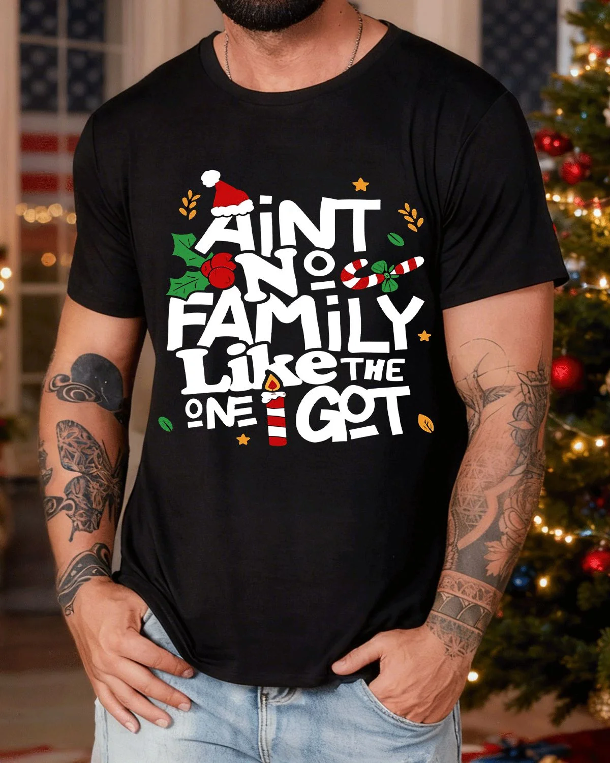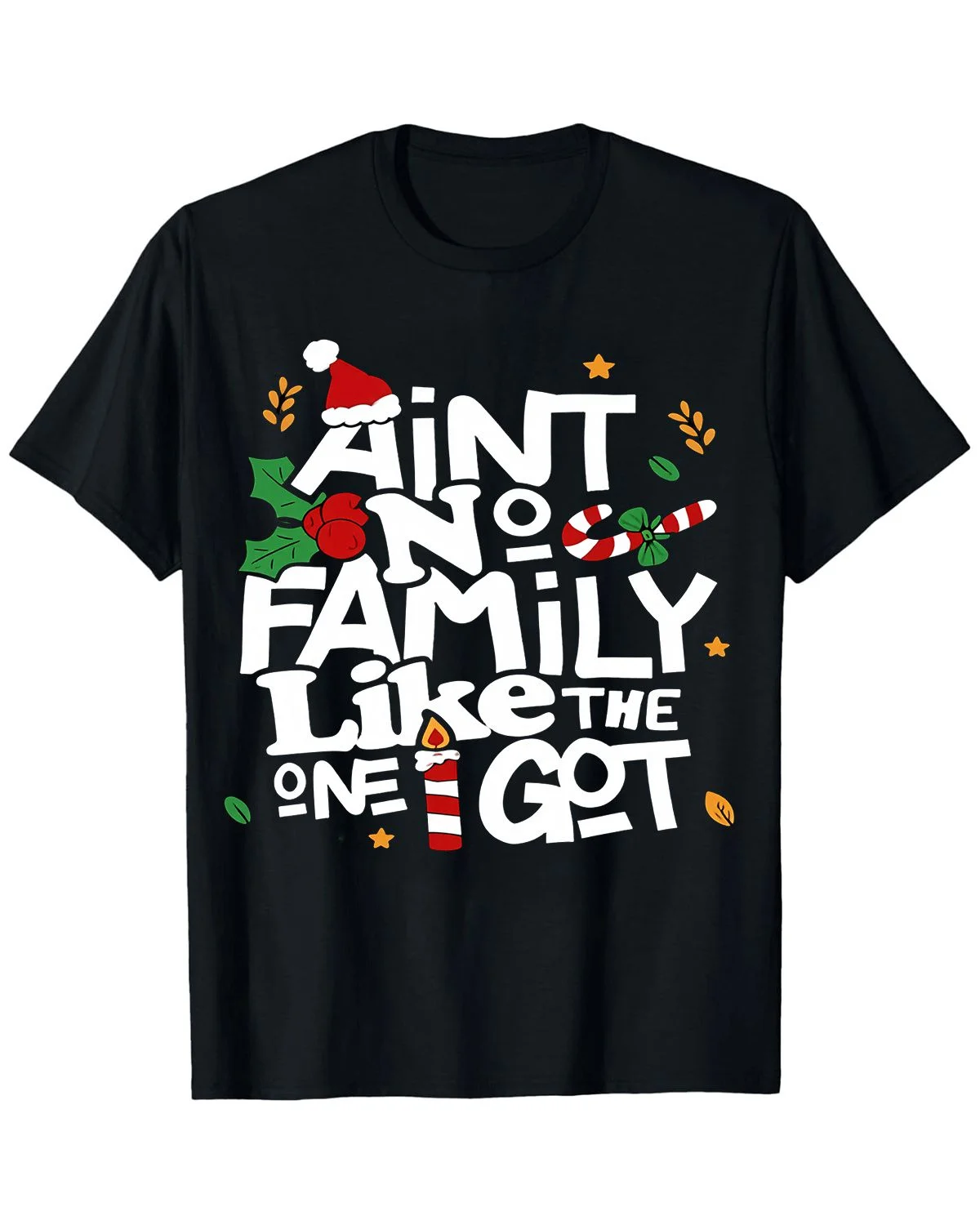 Christmas Ain't No Family Like The One I Got Summer Cotton Graphic T Shirt - Casual Funny, Short Sleeve, Soft Fabric, Comfortable Fit