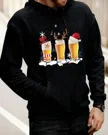 Christmas Beer Glasses with Snowman Reindeer and Santa Hat Cozy Graphic Hoodie for Men and Women - Casual Funny, Long Sleeve, Soft Fabric, Comfortable Fit