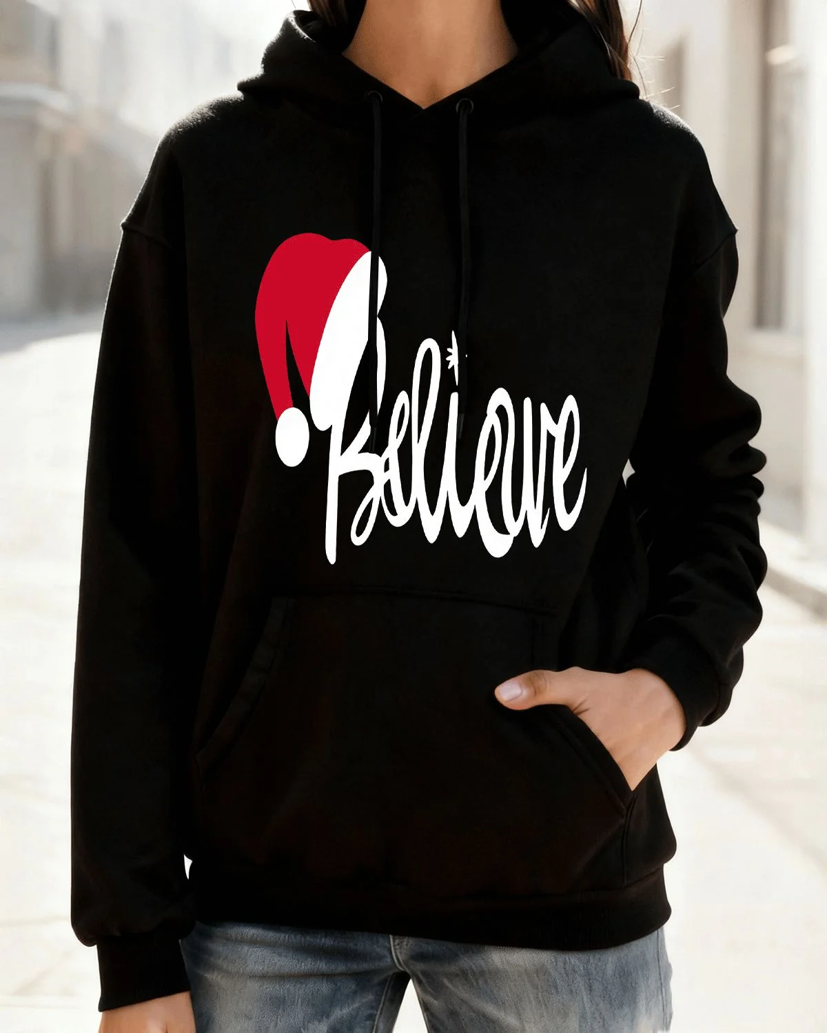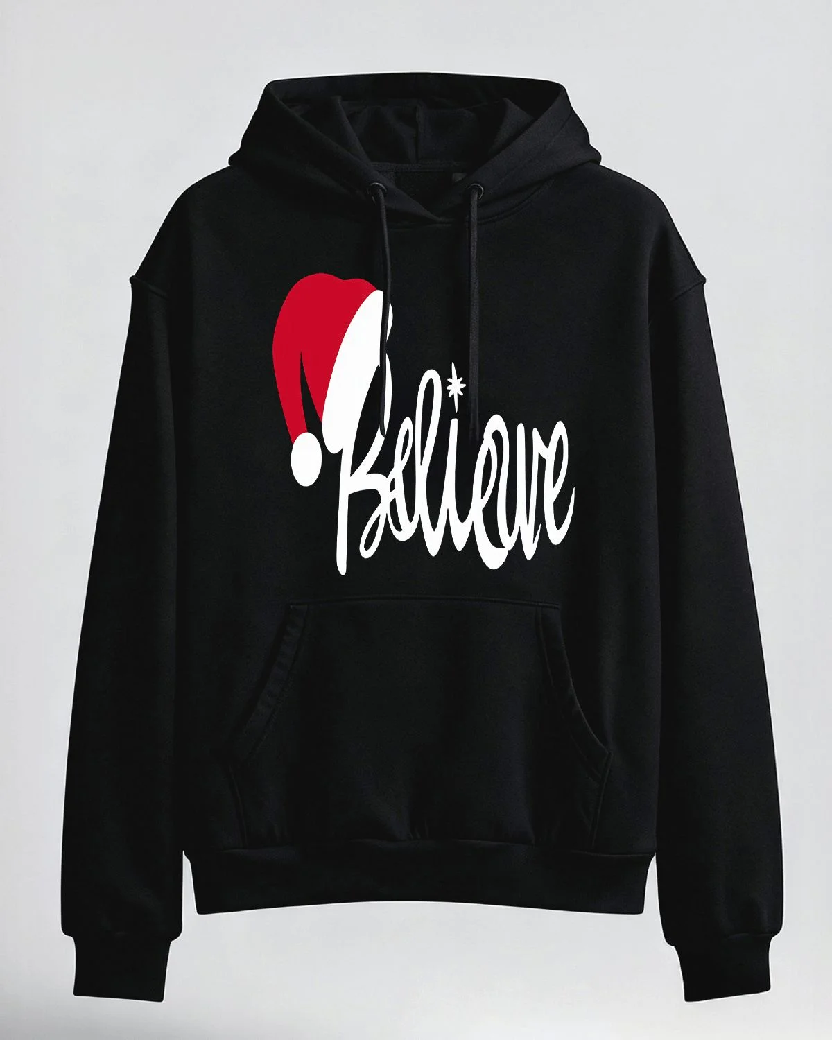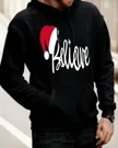 Christmas Believe Santa Hat Cozy Graphic Hoodie for Men and Women - Casual Modern, Long Sleeve, Soft Fabric, Comfortable Fit