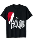 Christmas Believe Santa Hat Summer Cotton Graphic T Shirt - Casual Modern, Short Sleeve, Soft Fabric, Comfortable Fit