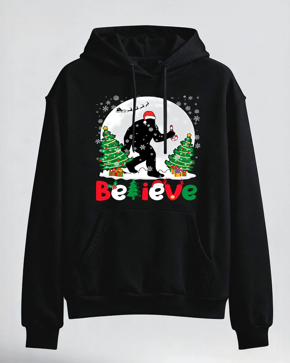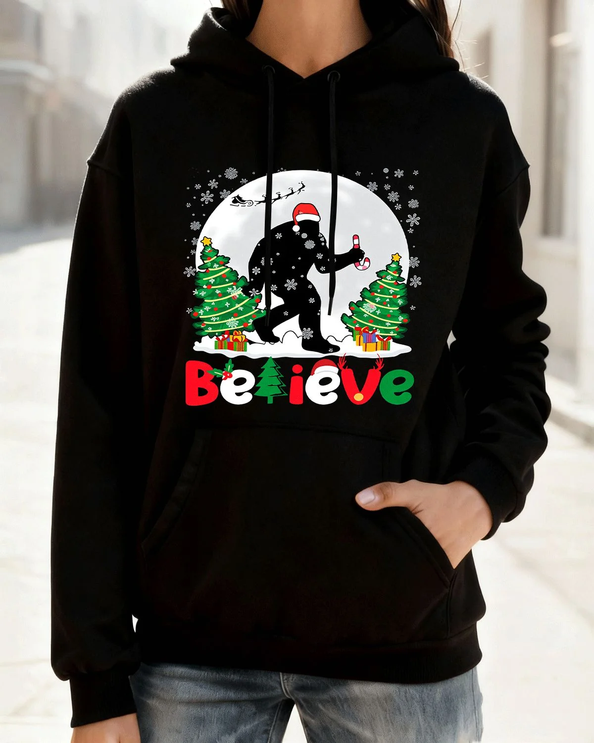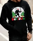 Christmas Bigfoot Believe Scene Cozy Graphic Hoodie for Men and Women - Funny Retro, Long Sleeve, Soft Fabric, Comfortable Fit