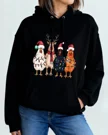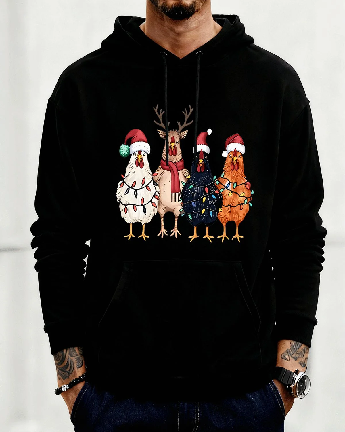 Christmas Chickens and Reindeer in Santa Hats Cozy Graphic Hoodie for Men and Women - Funny Retro, Long Sleeve, Soft Fabric, Comfortable Fit