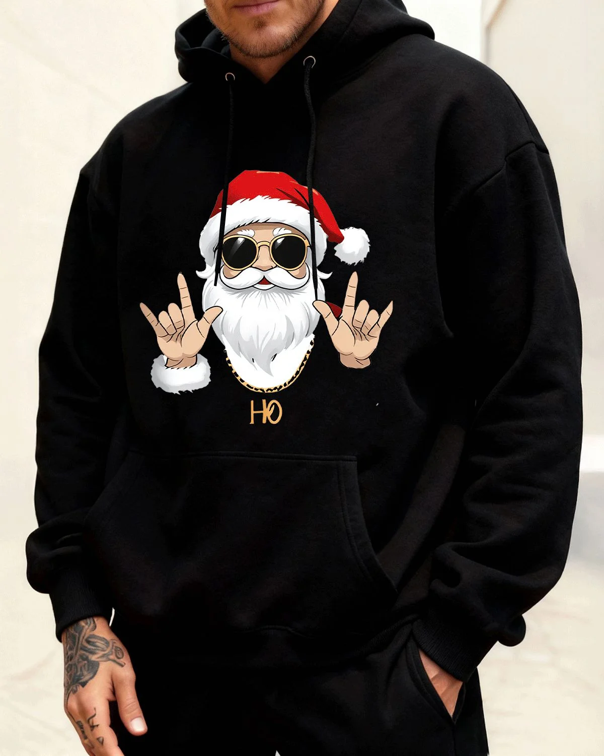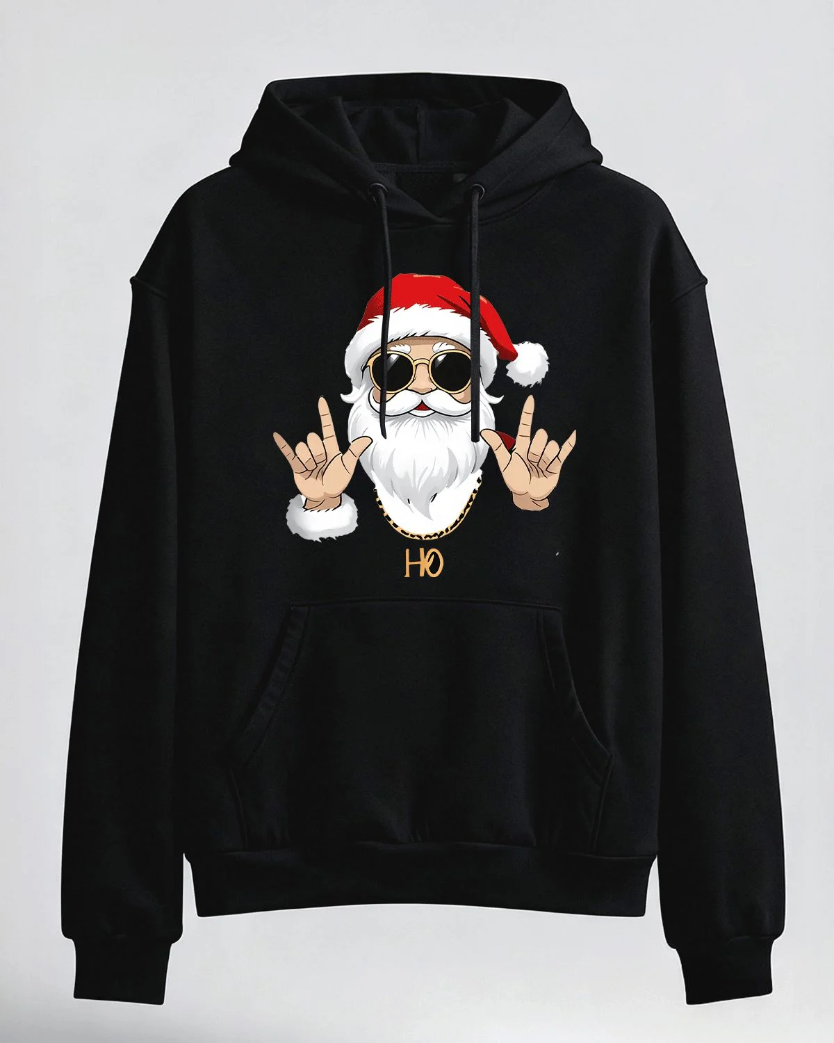 Angry Christmas Cat with Santa Hat and Lights Summer Cozy Graphic Hoodie - Funny Vintage, Long Sleeve, Soft Fabric, Comfortable Fit