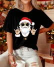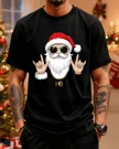 Christmas Santa Smoking Illustration Summer Cotton Graphic T Shirt - Casual Retro, Short Sleeve, Soft Fabric, Comfortable Fit