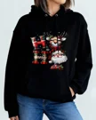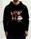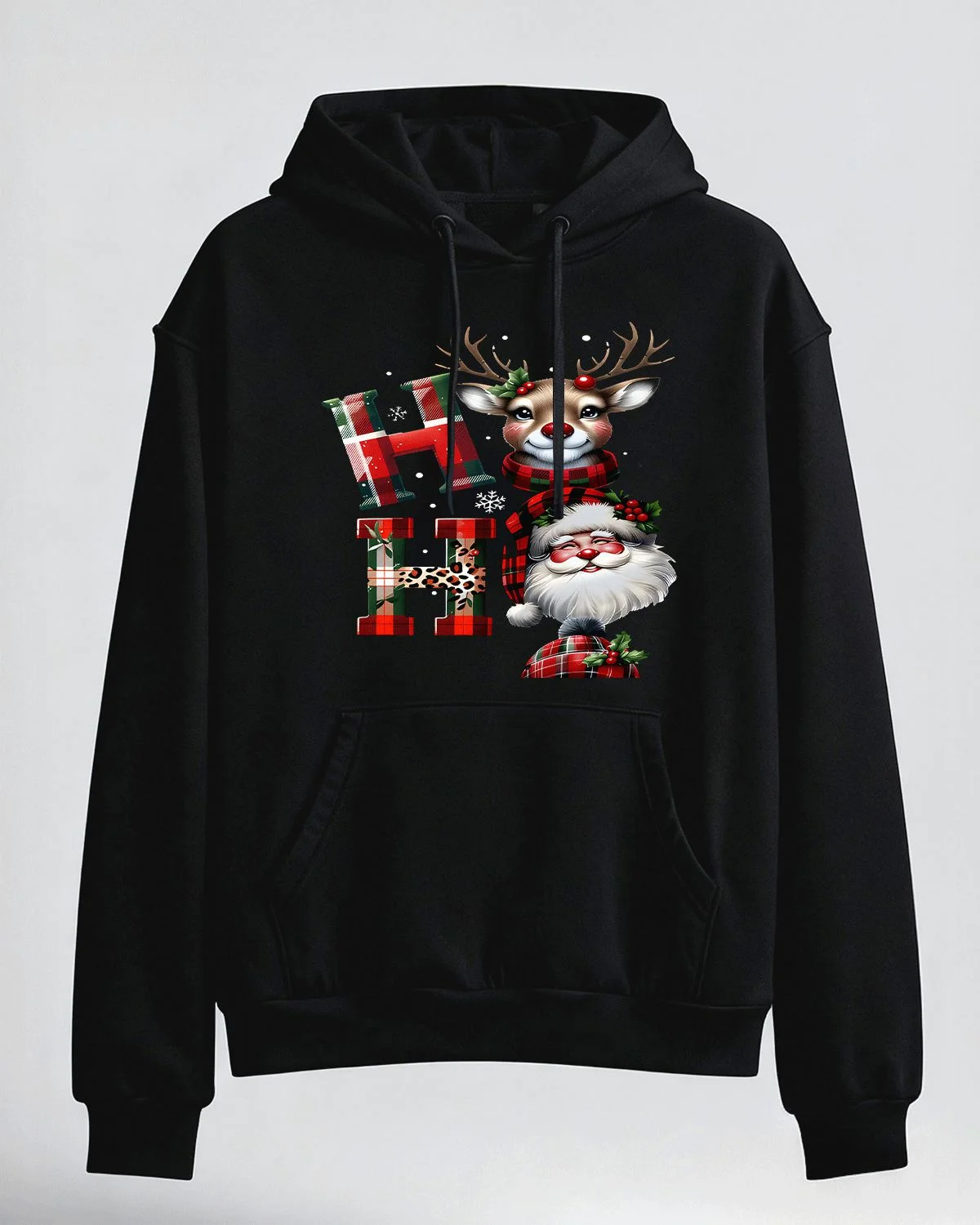 Christmas Deer and Santa HO HO HO Cozy Graphic Hoodie for Men and Women - Casual Vintage, Long Sleeve, Soft Fabric, Comfortable Fit
