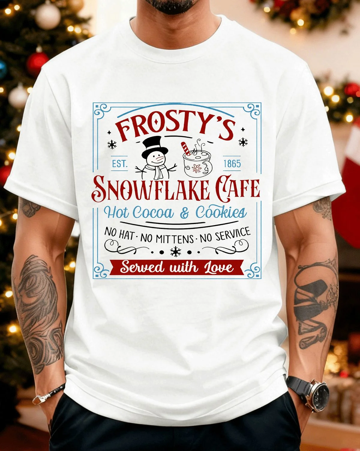 Christmas Chickens and Reindeer in Santa Hats Summer Cotton Graphic T Shirt - Funny Retro, Short Sleeve, Soft Fabric, Comfortable Fit