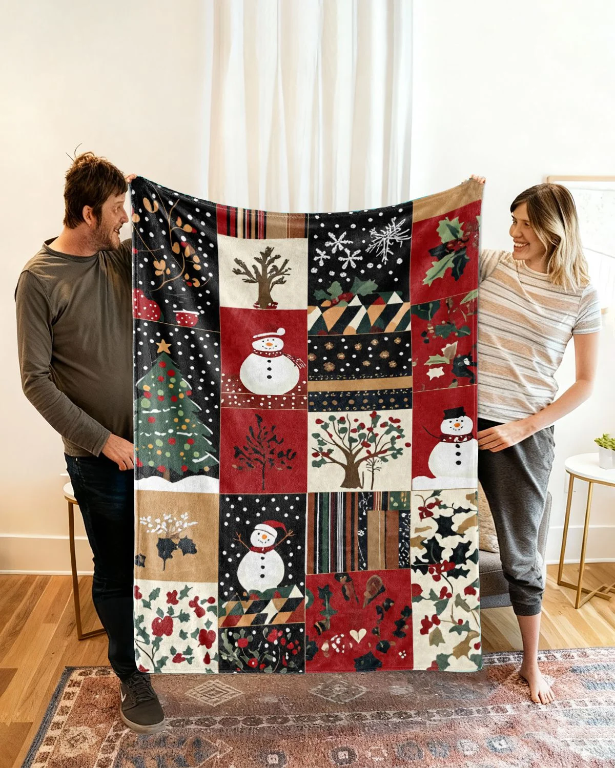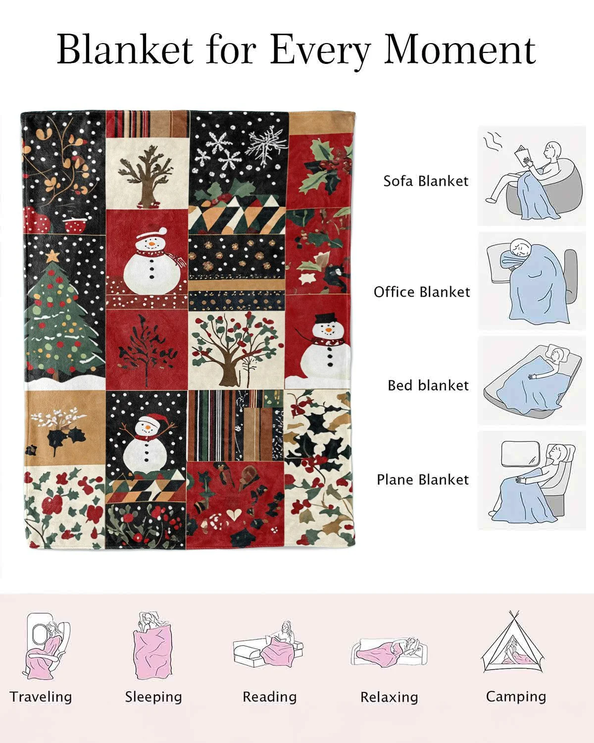 Christmas Holiday Snowman and Tree Love Gift Cozy Flannel Blanket-Cozy Classic,Plush,Warm,Lightweight,For Sofa,Bedroom Use