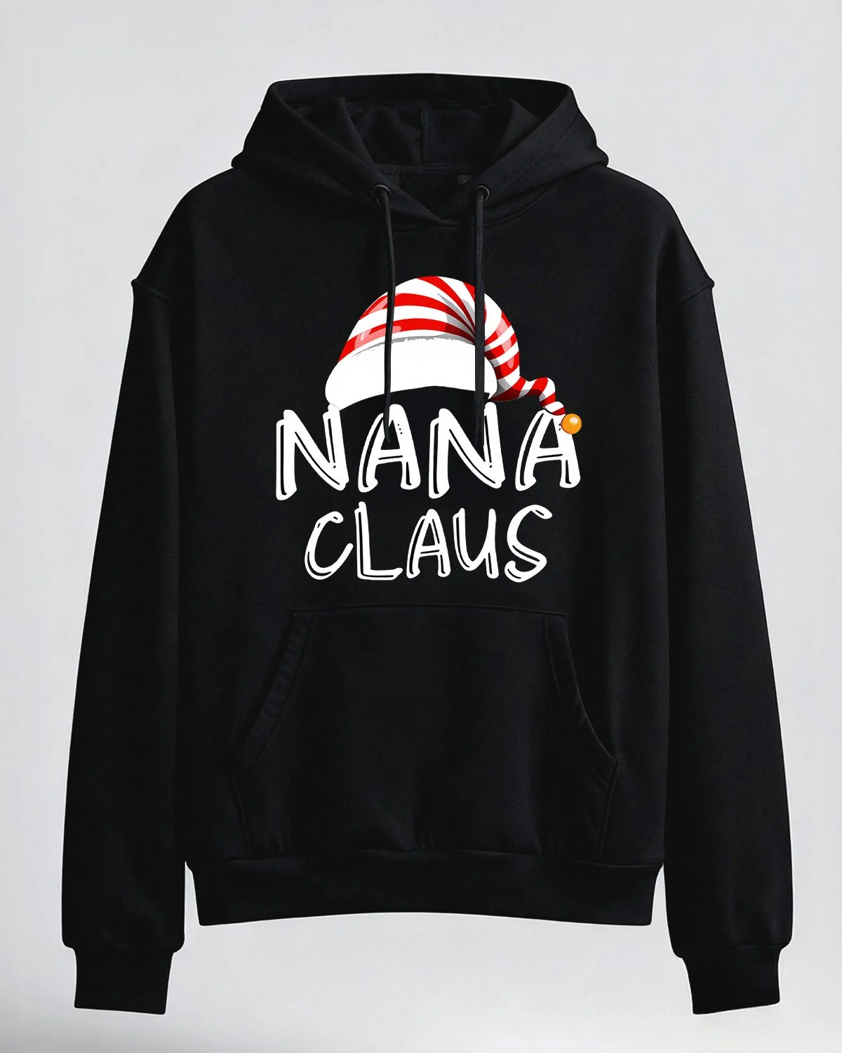 Christmas Nana Claus Hat Cozy Graphic Hoodie for Men and Women - Casual Funny, Long Sleeve, Soft Fabric, Comfortable Fit