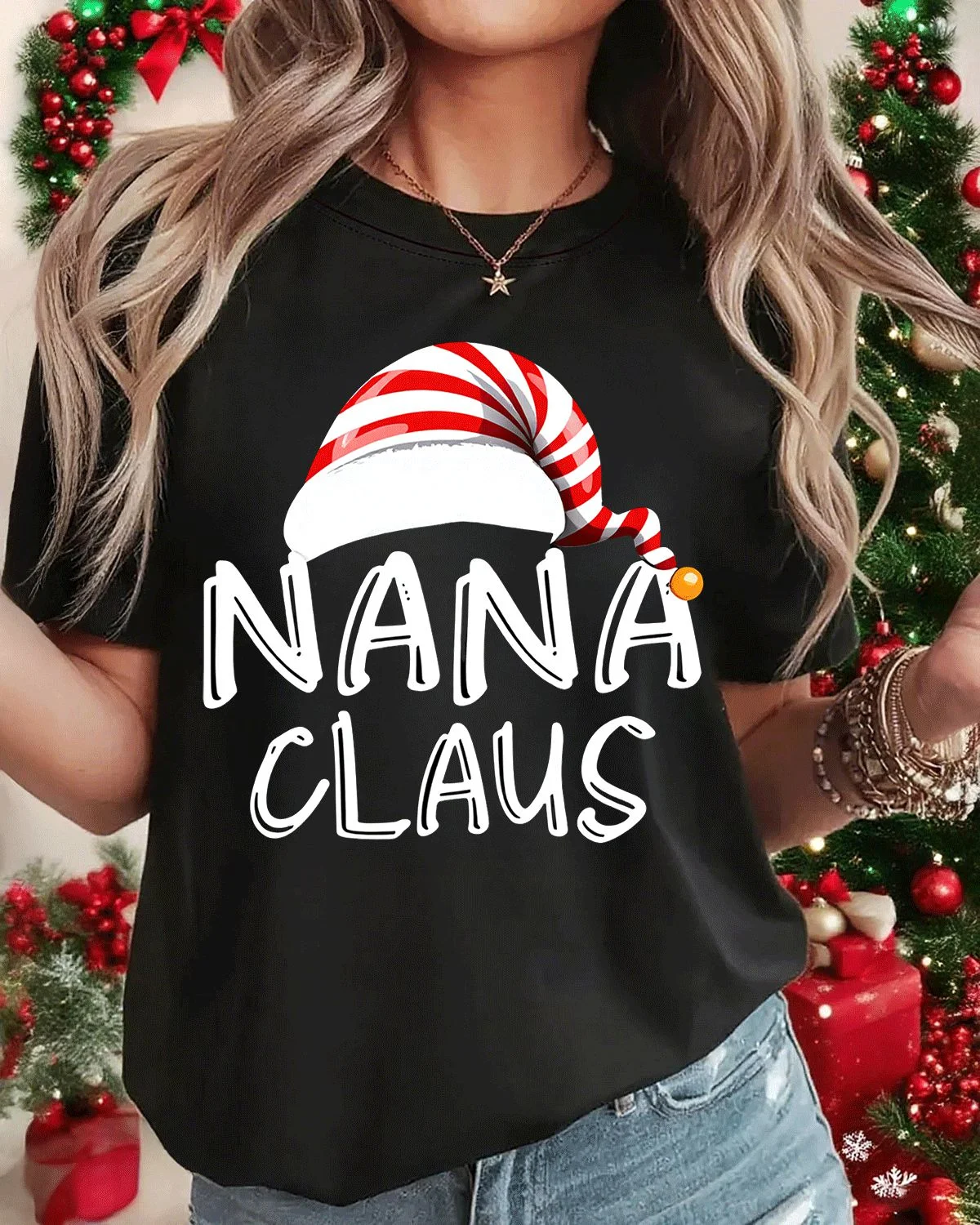 Christmas Chickens and Reindeer in Santa Hats Summer Cotton Graphic T Shirt - Funny Retro, Short Sleeve, Soft Fabric, Comfortable Fit