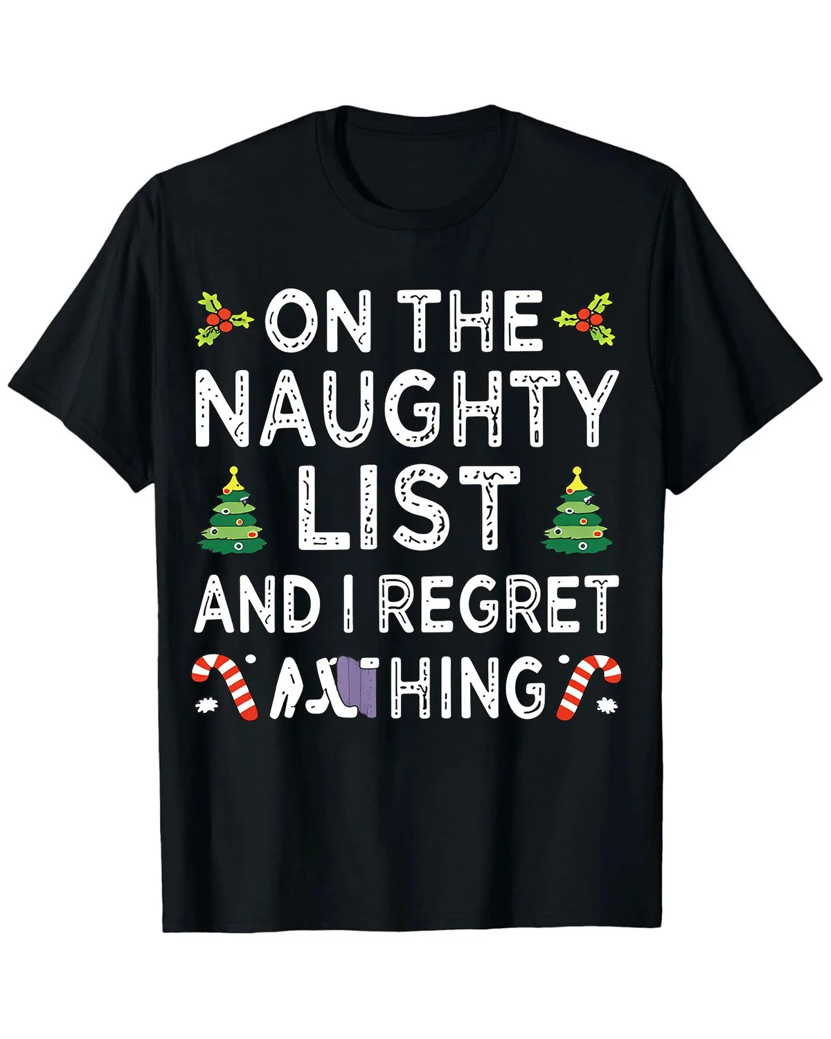 Christmas Naughty List Quote Summer Cotton Graphic T Shirt - Funny Casual, Short Sleeve, Soft Fabric, Comfortable Fit