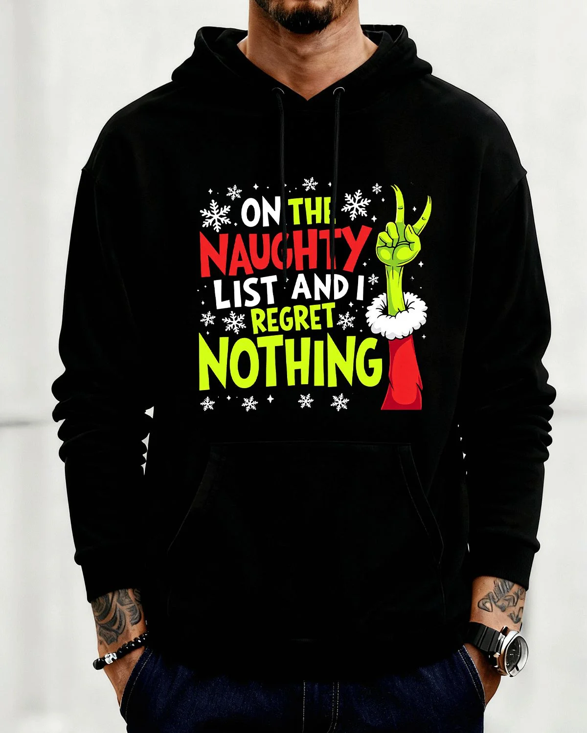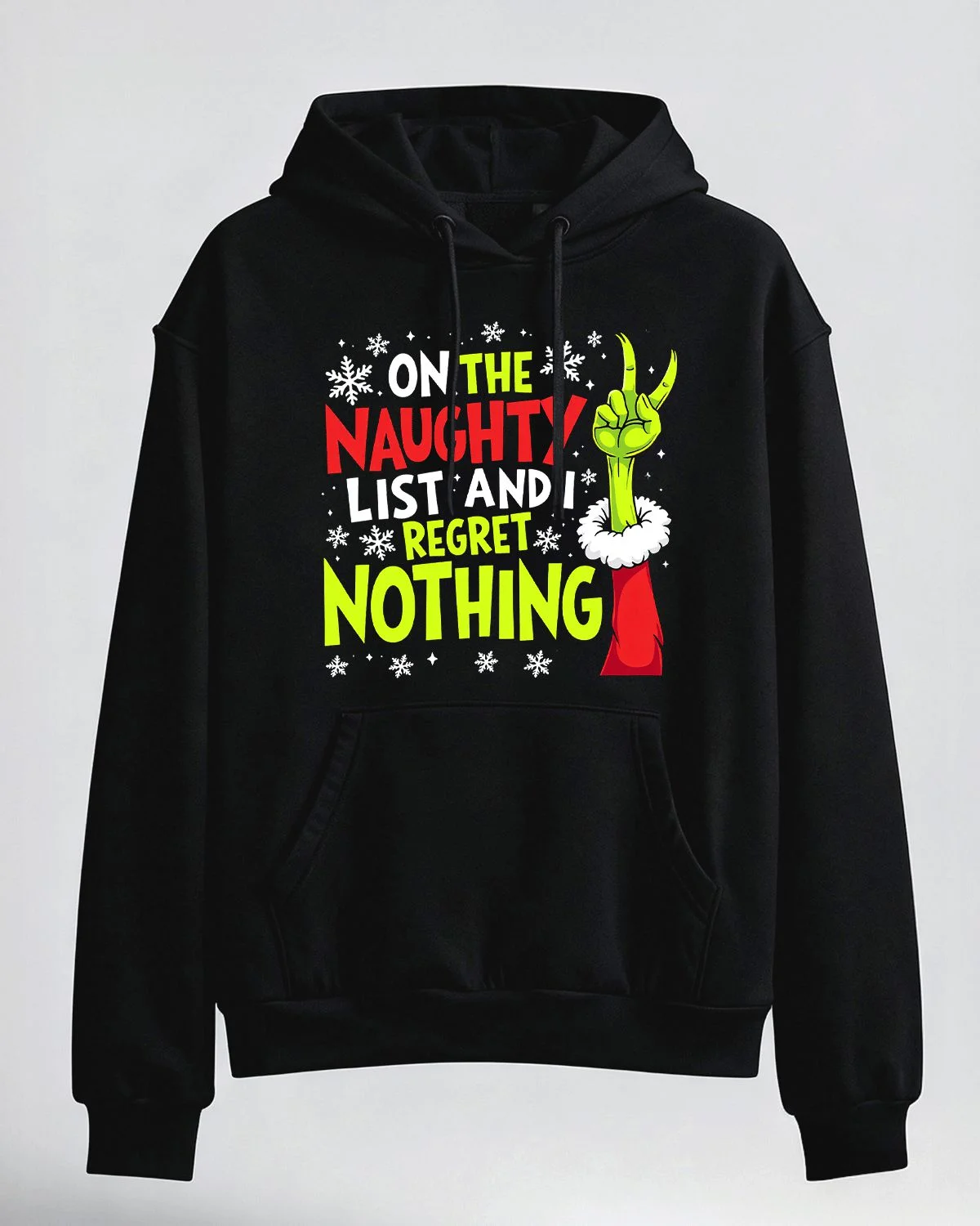 Christmas Naughty List Regret Nothing Cozy Graphic Hoodie for Men and Women - Funny Retro, Long Sleeve, Soft Fabric, Comfortable Fit
