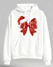 Christmas Red Glitter Bow with Santa Hat Cozy Graphic Hoodie for Men and Women - Casual Chic, Long Sleeve, Soft Fabric, Comfortable Fit