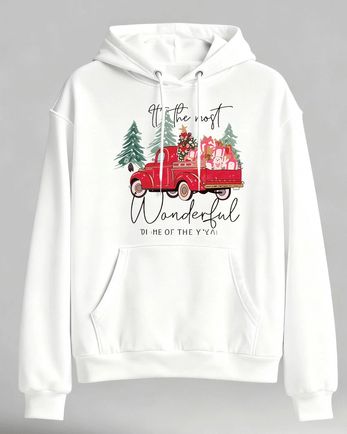 Christmas Red Truck with Gifts and Trees Cozy Graphic Hoodie for Men and Women - Vintage Casual, Long Sleeve, Soft Fabric, Comfortable Fit