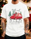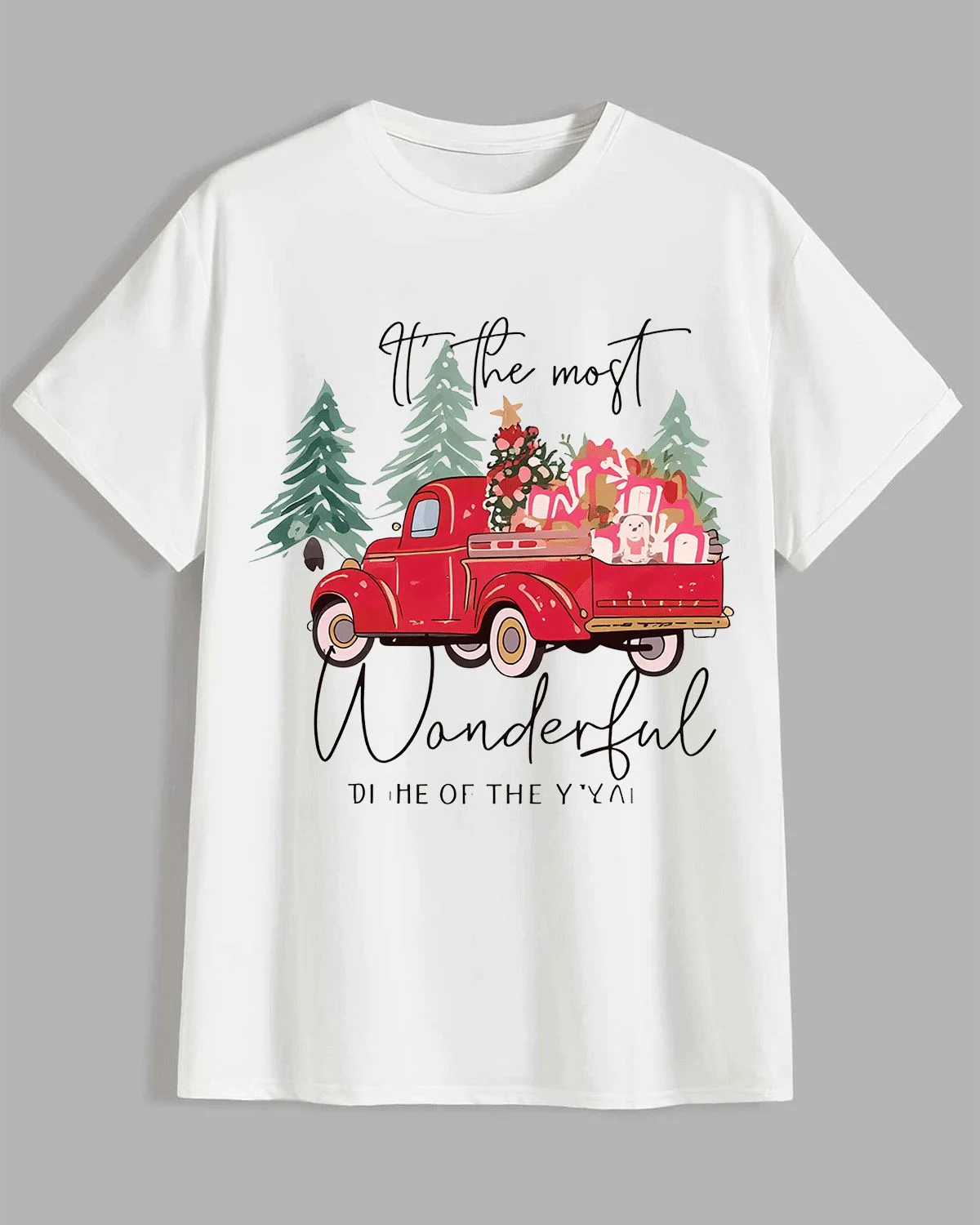 Christmas Red Truck with Gifts and Trees Summer Cotton Graphic T Shirt - Vintage Casual, Short Sleeve, Soft Fabric, Comfortable Fit