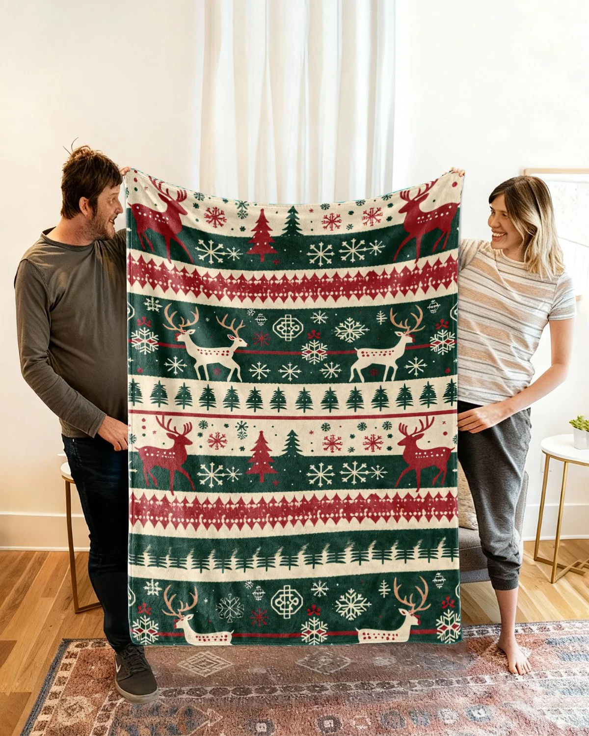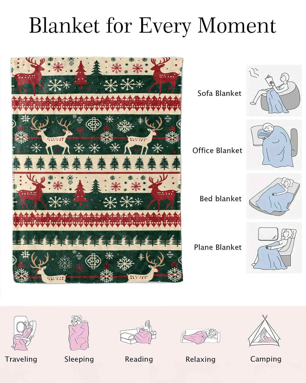 Christmas Reindeer and Snowflake Holiday Love Gift Cozy Flannel Blanket-Cozy Classic,Warm,Plush,Durable,For Couch,Bedroom Use