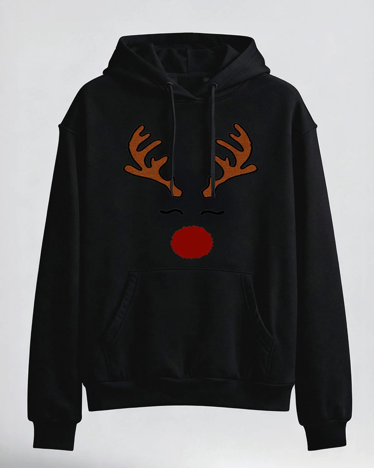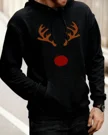 Christmas Rudolph Antlers and Red Nose Cozy Graphic Hoodie for Men and Women - Casual Funny, Long Sleeve, Soft Fabric, Comfortable Fit