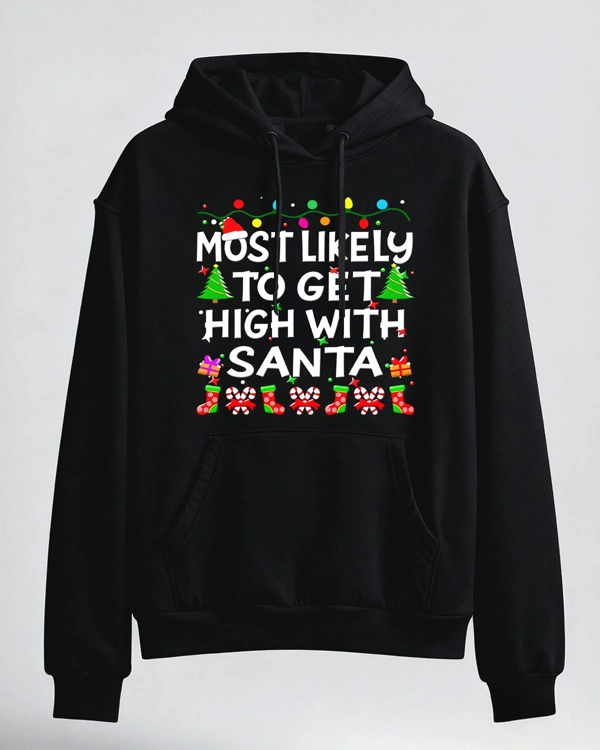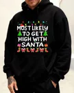 Angry Christmas Cat with Santa Hat and Lights Summer Cozy Graphic Hoodie - Funny Vintage, Long Sleeve, Soft Fabric, Comfortable Fit