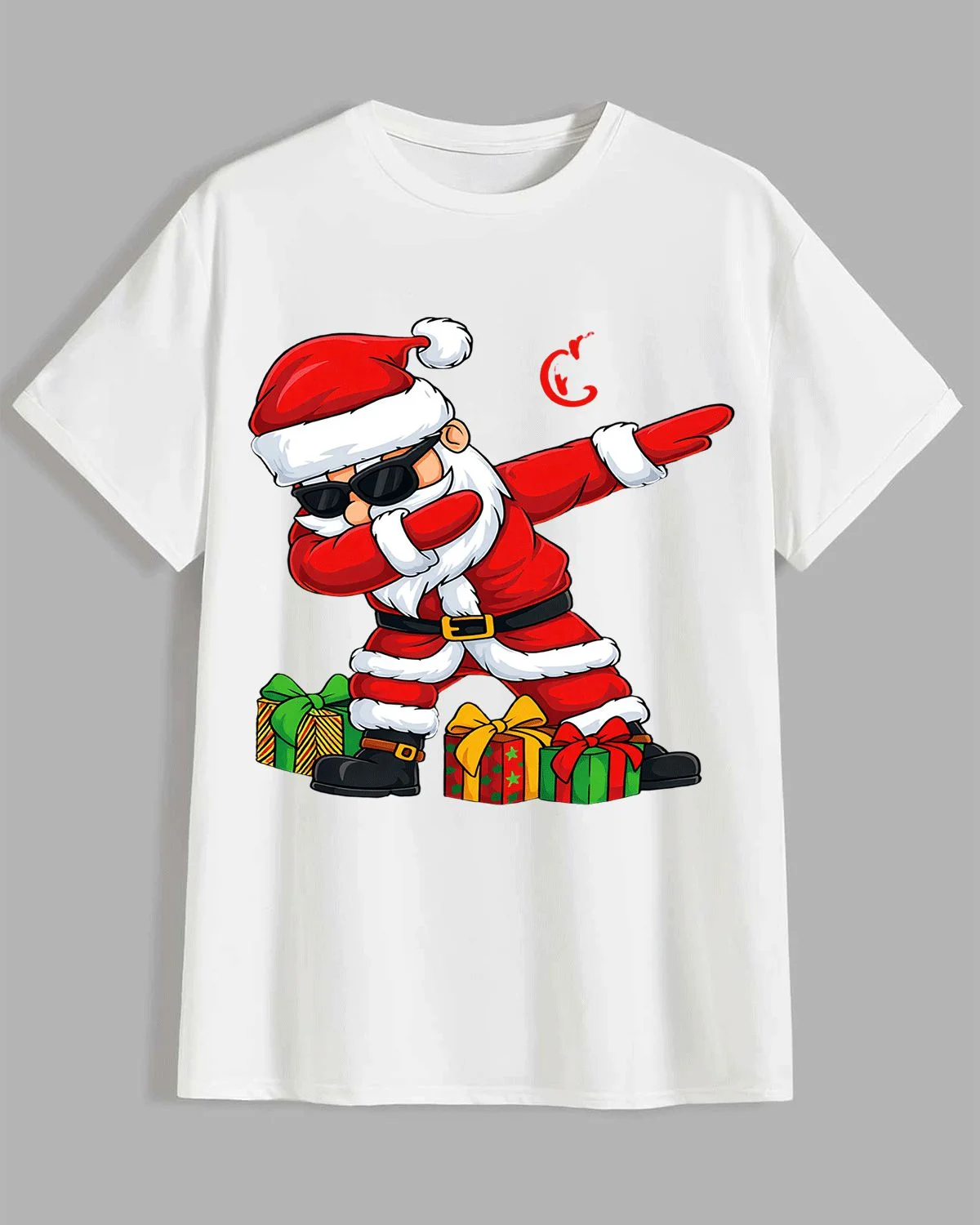 Christmas Santa Dabbing with Gifts Summer Cotton Graphic T Shirt - Casual Cool, Short Sleeve, Soft Fabric, Comfortable Fit