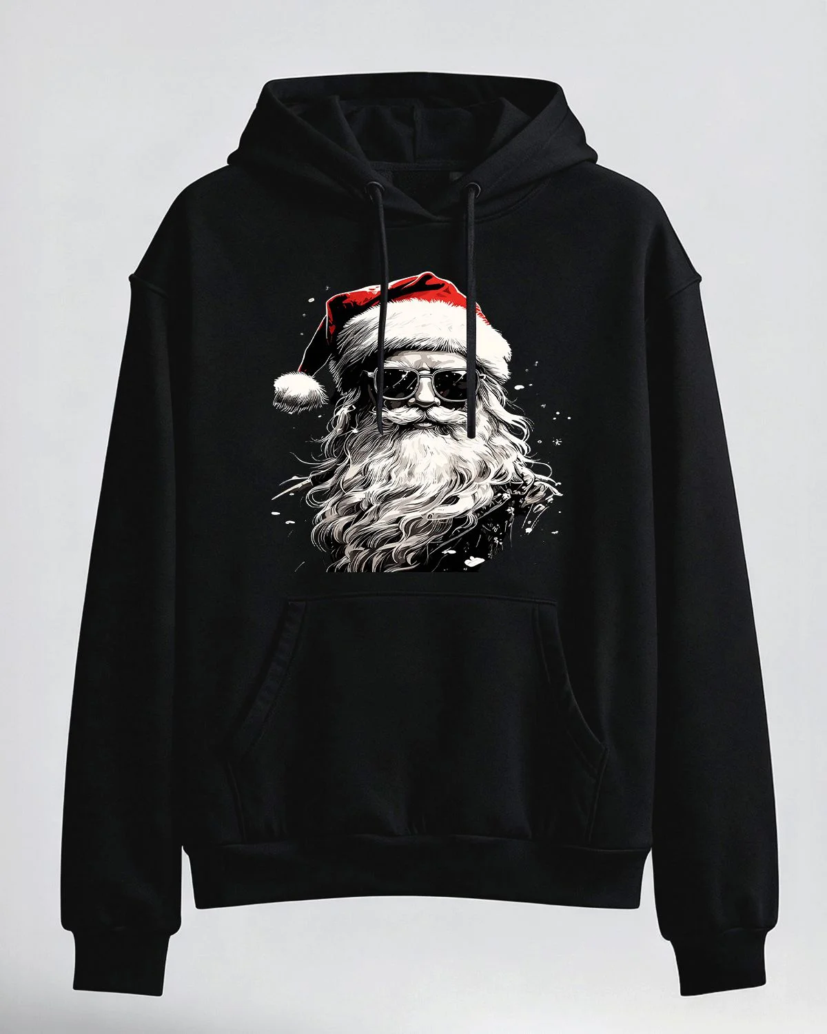 Christmas Santa Hat and Beard Cozy Graphic Hoodie for Men and Women - Casual Vintage, Long Sleeve, Soft Fabric, Comfortable Fit