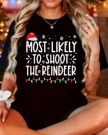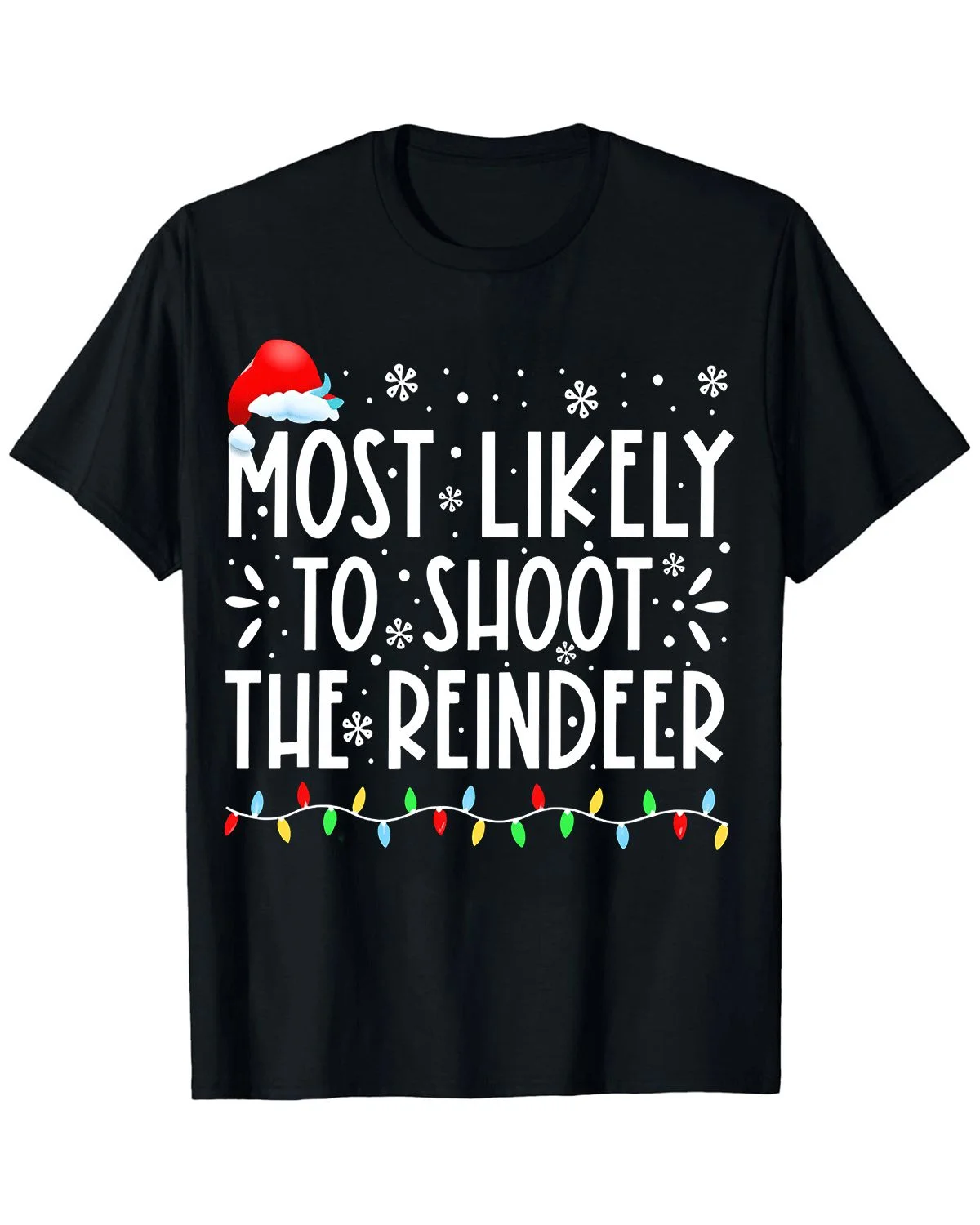 Christmas Chickens and Reindeer in Santa Hats Summer Cotton Graphic T Shirt - Funny Retro, Short Sleeve, Soft Fabric, Comfortable Fit