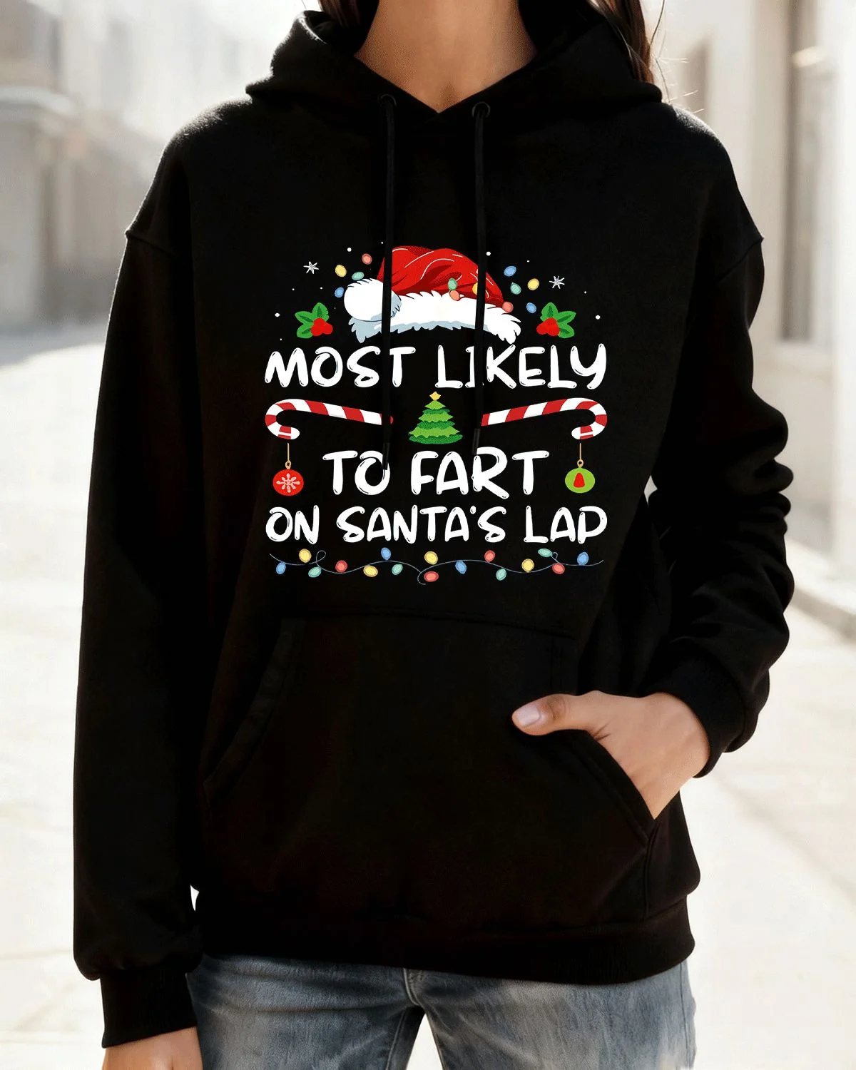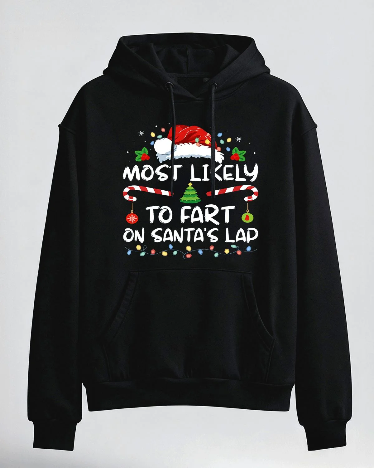 Christmas Santa Hat Candy Canes Funny Quote Cozy Graphic Hoodie for Men and Women - Casual Graphic, Long Sleeve, Soft Fabric, Comfortable Fit