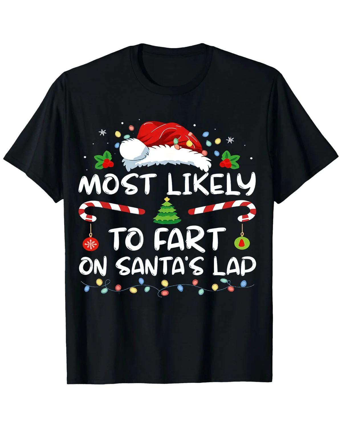 Christmas Santa Hat Candy Canes Funny Quote Summer Cotton Graphic T Shirt - Casual Graphic, Short Sleeve, Soft Fabric, Comfortable Fit