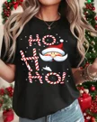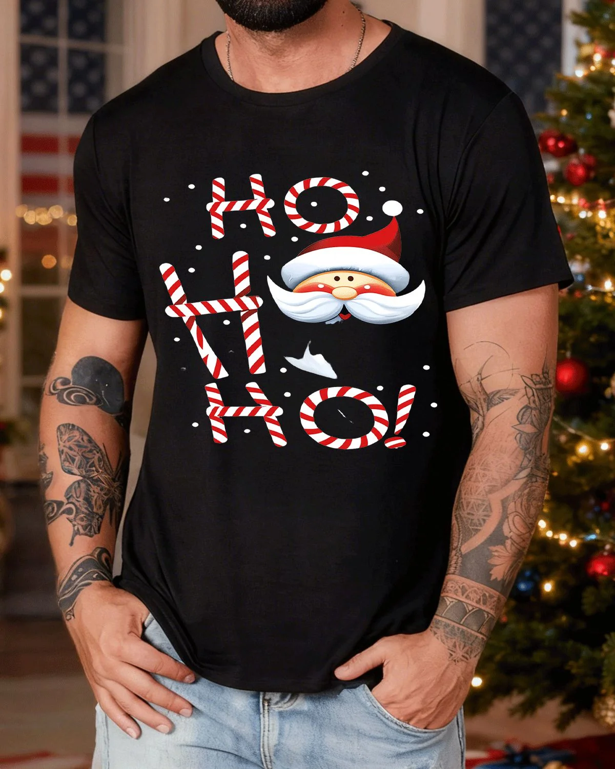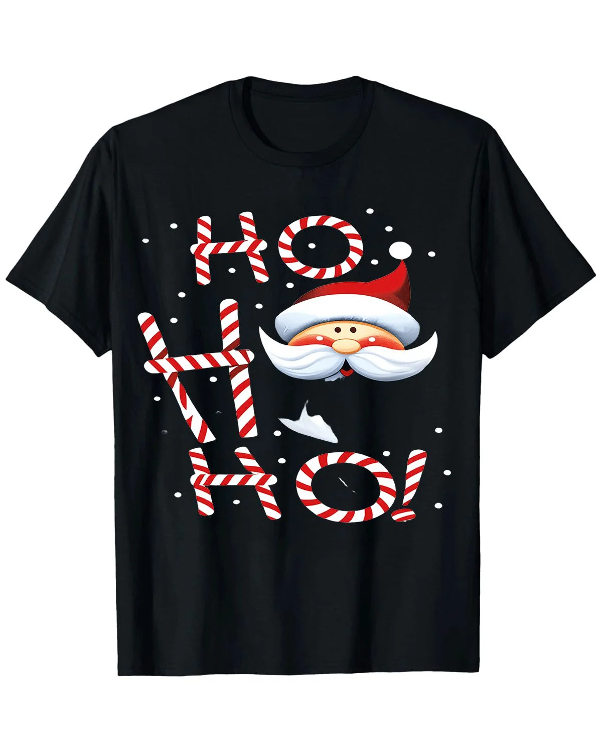 Christmas Santa Ho Ho Ho Candy Cane Summer Cotton Graphic T Shirt - Funny Retro, Short Sleeve, Soft Fabric, Comfortable Fit