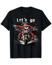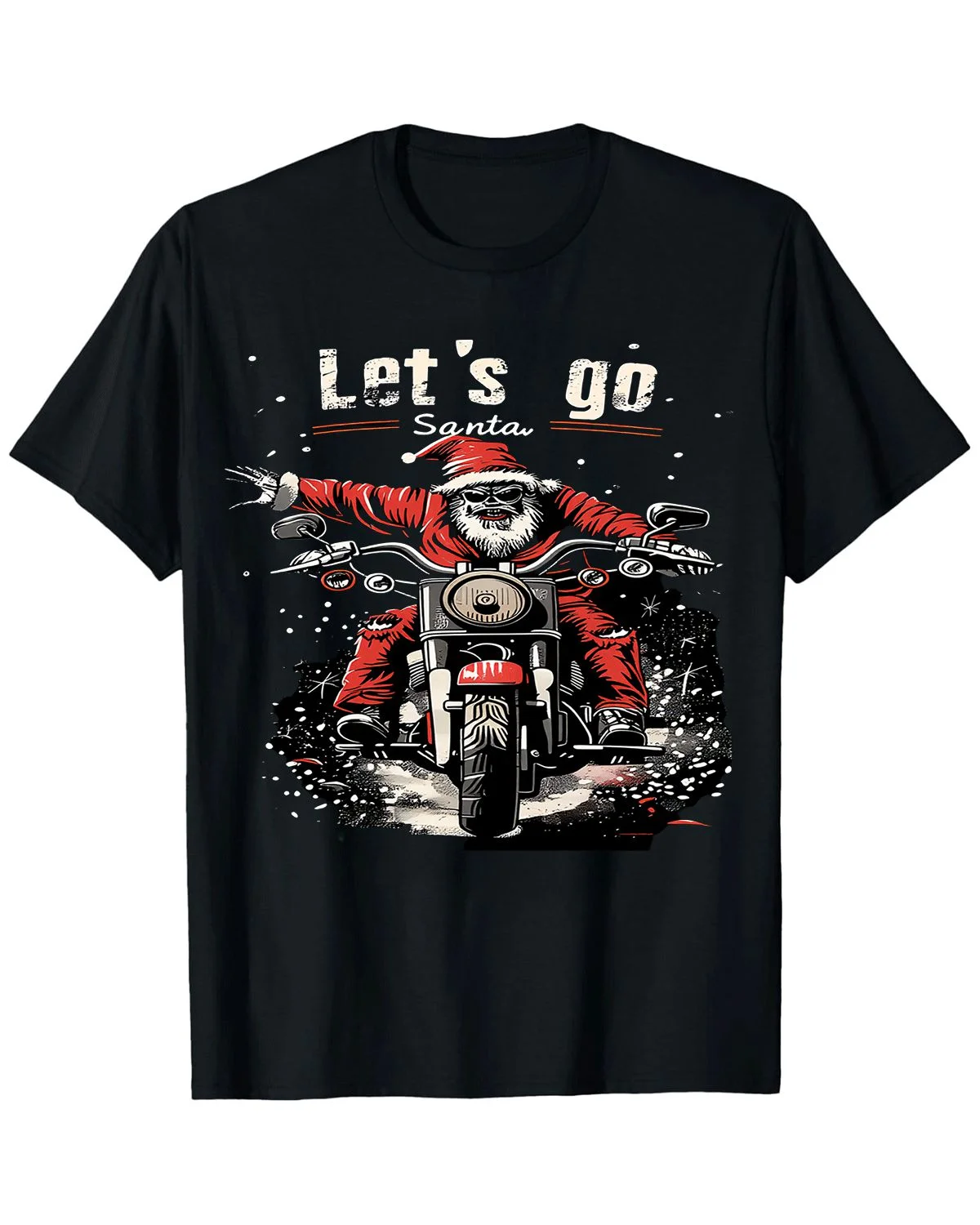 Christmas Santa Riding Motorcycle Let's Go Summer Cotton Graphic T Shirt - Cool Retro, Short Sleeve, Soft Fabric, Comfortable Fit