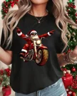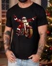 Christmas Santa Riding Motorcycle Summer Cotton Graphic T Shirt - Cool Retro, Short Sleeve, Soft Fabric, Comfortable Fit