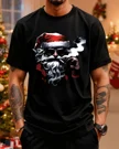 Christmas Santa Smoking Art Summer Cotton Graphic T Shirt - Casual Artistic, Short Sleeve, Soft Fabric, Comfortable Fit