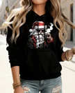 Christmas Santa Smoking Illustration Cozy Graphic Hoodie for Men and Women - Casual Retro, Long Sleeve, Soft Fabric, Comfortable Fit